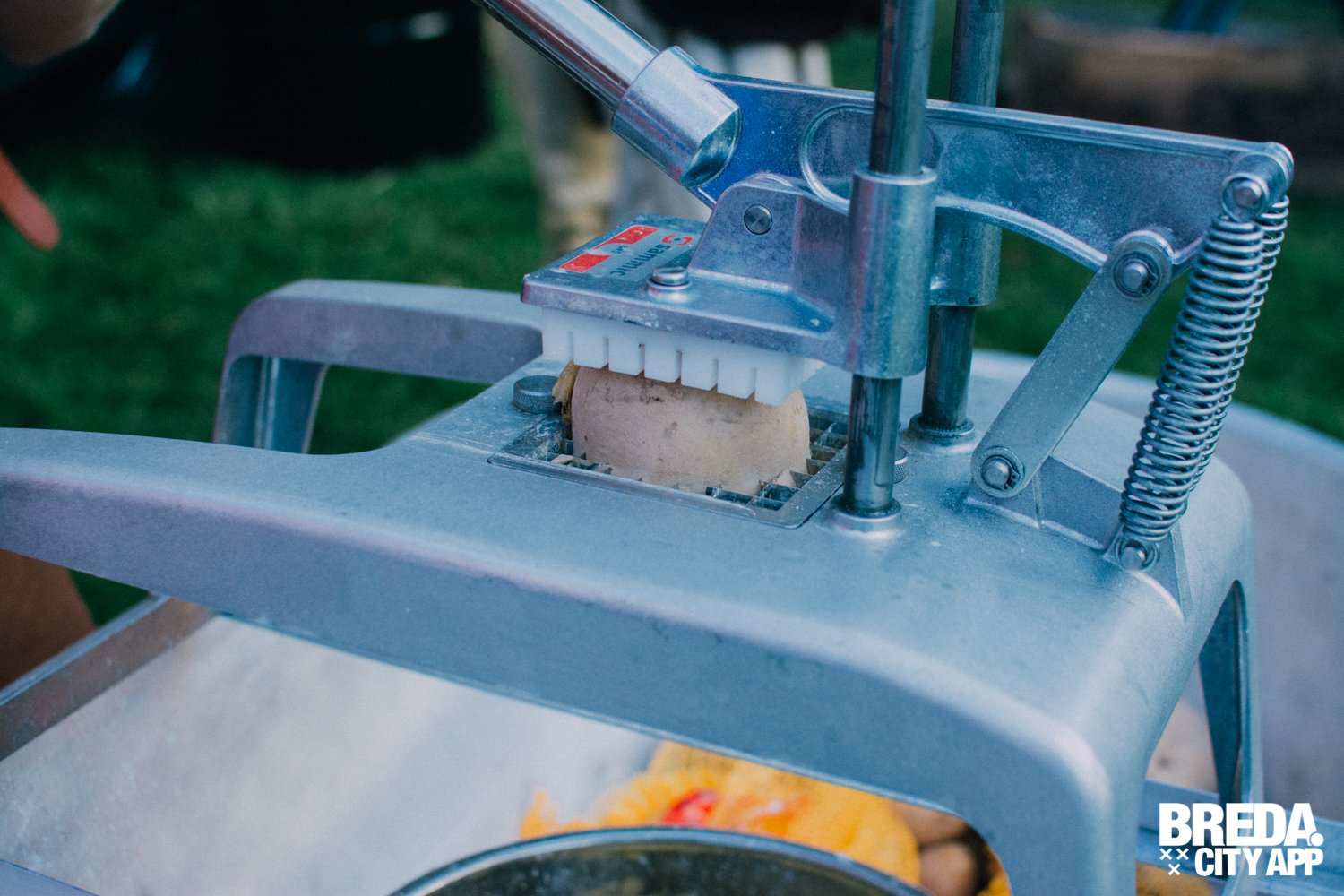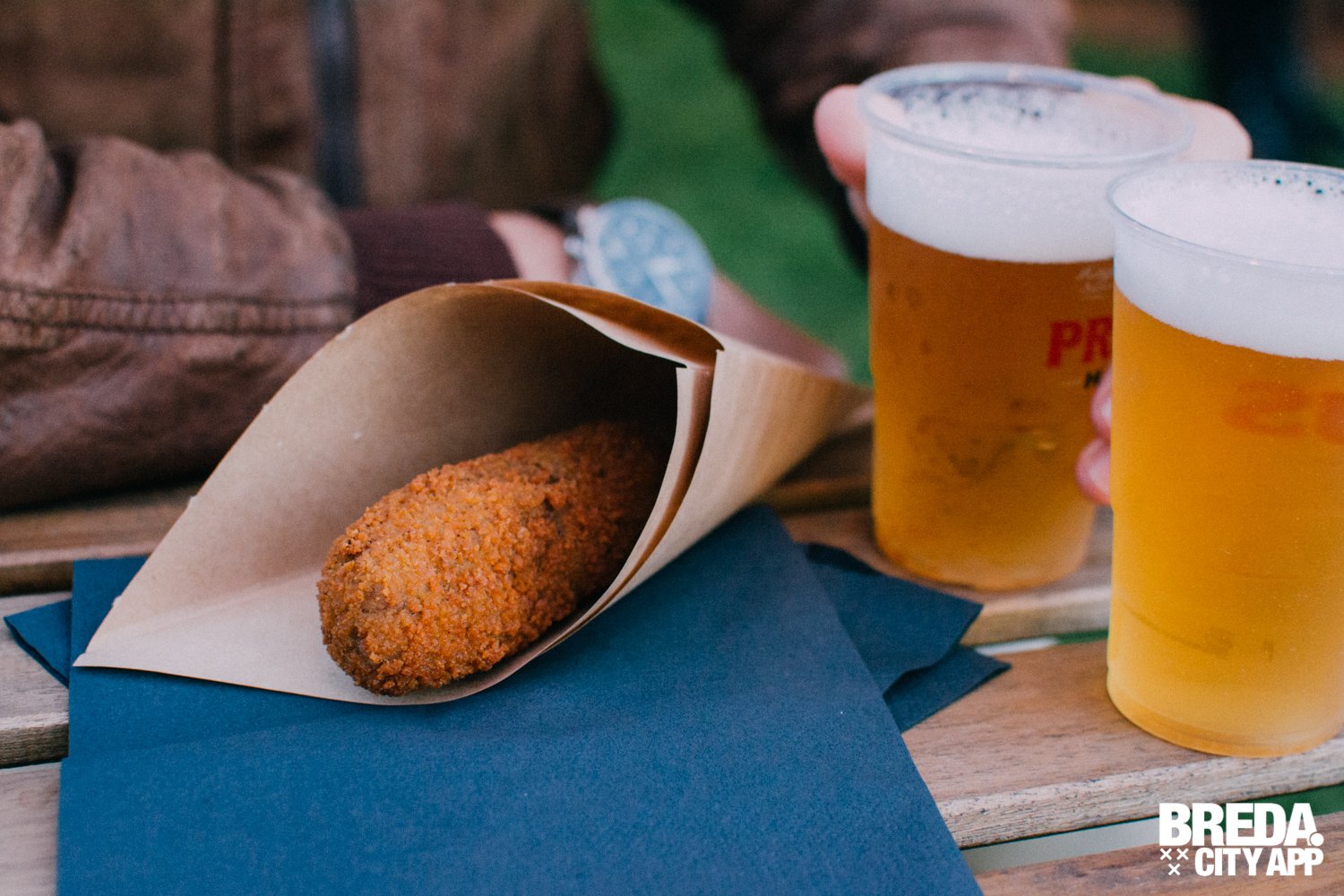 Als afsluiter liepen we door naar de foodtruck Potato Delicious, waar ze met een grote frietsnijder (die trots voor hun foodtruck pronkte) hun verse friet snijden. Daarnaast hadden ze natuurlijk ook meerdere snacks zoals frikadel en kaassoufflé, maar wij kozen voor een echte klassieker: de kroket! En eerlijk is eerlijk, samen met een lekker koud biertje, was dit de beste kroket die ik in tijden gegeten heb.