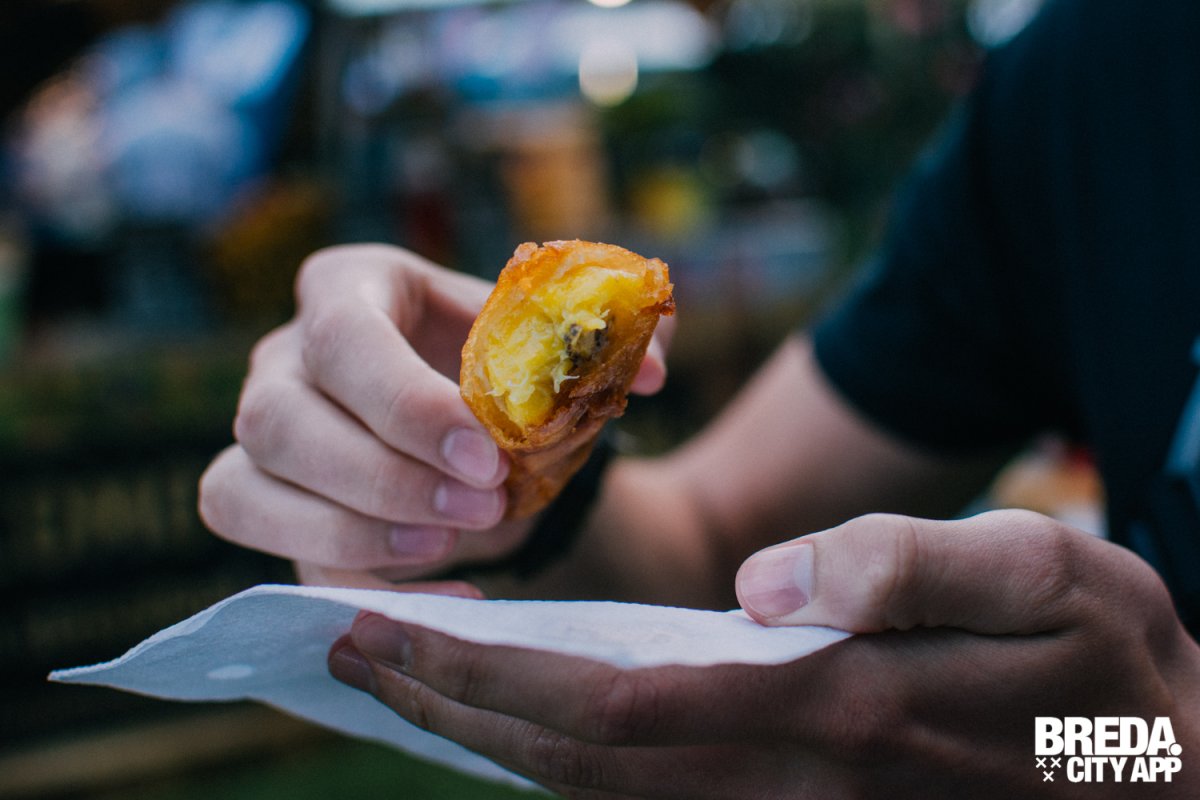 Zin om erop uit te gaan dit weekend, of gewoon even geen zin om zelf thuis te koken? Dat komt dan goed uit, want dit weekend vindt van vrijdag tot en met zondag foodfestival Breda Smult plaats! Het gratis toegankelijke festival in het groene Hooghoutpark is een kleinschalig sfeervol festival met allerlei eetkraampjes, en is leuk voor zowel jong als oud. Van de Spaanse, Aziatische of Zuid-Amerikaanse keuken tot verse aardbeien, popcorn en cocktails, er is van alles! Onze foodie Nina probeerde vrijdagavond alvast de lekkerste hapjes.
