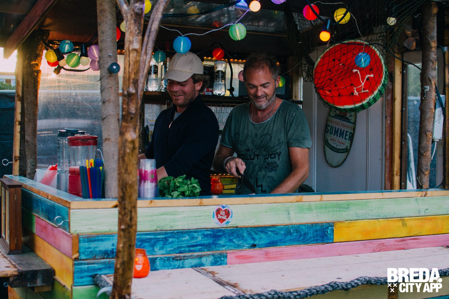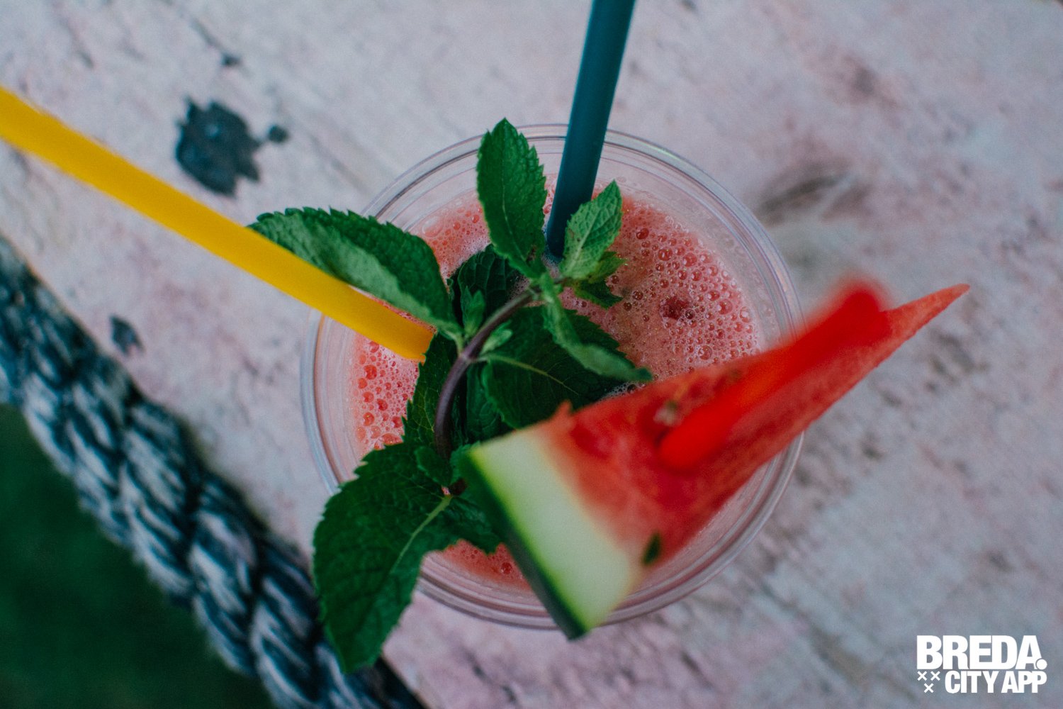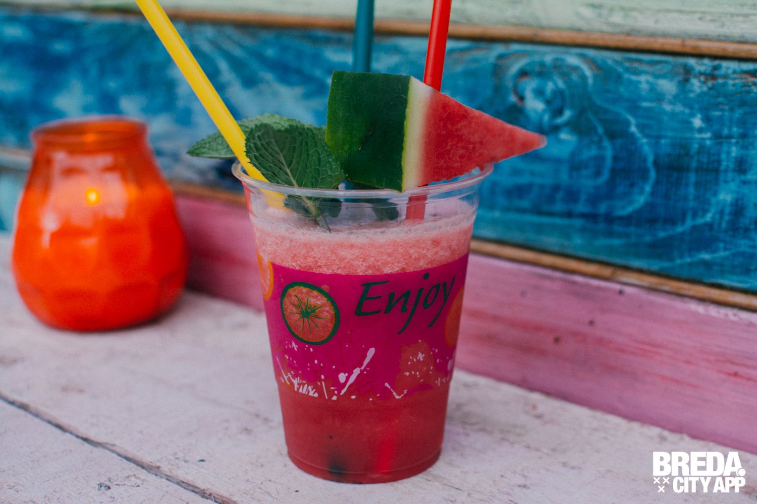 Ons oog viel daarna al snel op een van de meest kleurrijke foodtrucks van het festival, waar ze verschillende soorten cocktails aanboden. De mannen van Tony Melony maakten een prachtige meloencocktail voor ons met verfrissende verse munt erin. Niet te zoet, alcohol niet te overheersend aanwezig, precies goed! Terwijl we met de cocktail in onze hand konden chillen in relaxte strandstoeltjes, voorzag de liveband een paar meter verderop ons van sfeervolle muziek, variërend van rock tot pop.