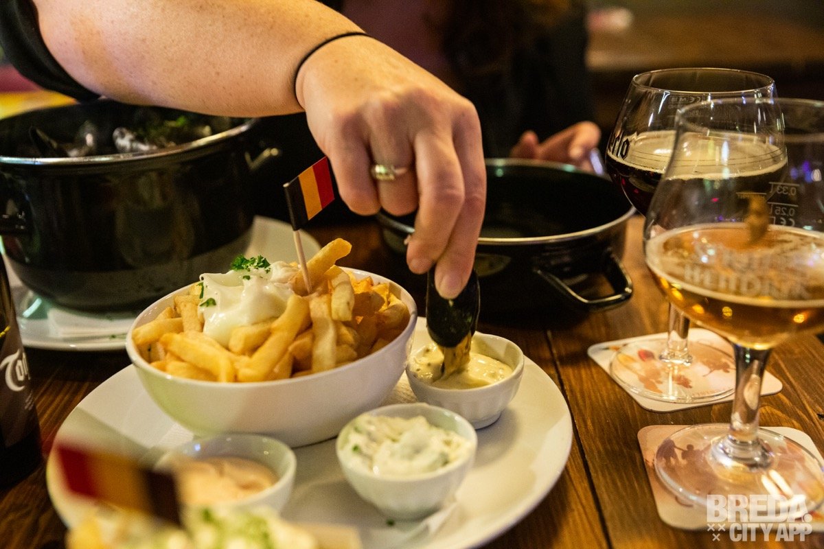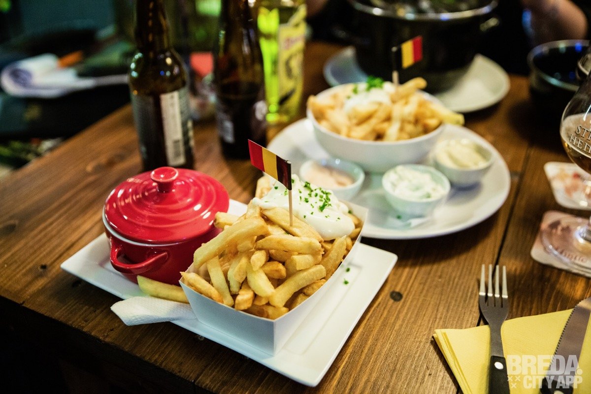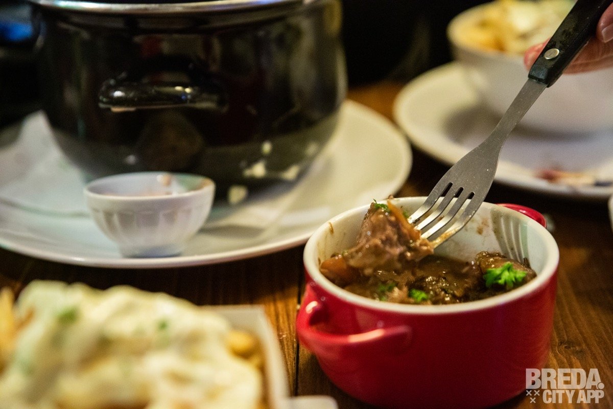 De Vlaamse frieten komen met een Belgische mayonaise. Het huisgemaakt stoofvlees is bereid in Tongerlo Nox en dankt daar zijn volle rijke zoetige smaak aan. Het donker bier van brouwerij Haacht is een verrukkelijke begeleider bij de malse stoof.