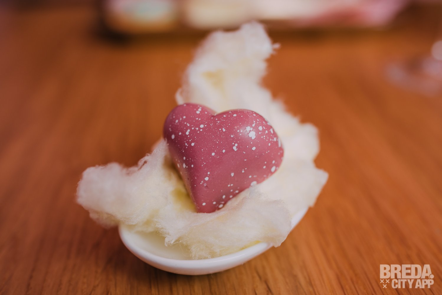 Bij binnenkomst werden we zeer vriendelijk ontvangen en het is ons zeker niet ontgaan dat A Cup of Cake echt fantastisch is ingericht. Het is een hele beleving. Om te beginnen krijg je bij de High Cocktail altijd als eerst de Cotton Candy Prosecco. Niet alleen heerlijk maar ook een echt plaatje! We krijgen er ook nog een schaaltje met nootjes bij.
