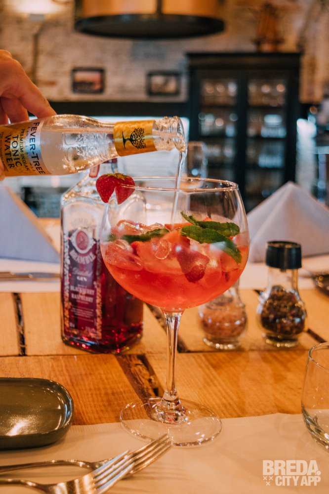 Als aperitief beginnen wij met diverse drankjes. Er is een uitgebreide wijn- en bierkaart en daarnaast een ruime keuze in cocktails en Gin & Tonics. Wij kiezen twee verschillende witte wijnen. Een Franse Chardonney met een droge, frisse smaak en een Pinot Grigio uit Italië. Daarnaast wordt een Bombay Bramble Gin & Premium Indian Tonic met munt en aardbei geschonken en de Molen’tof’Cocktail bestaande uit wodka, huisgemaakte ice tea, sinaasappel, limoen en ijs...erg lekker!
