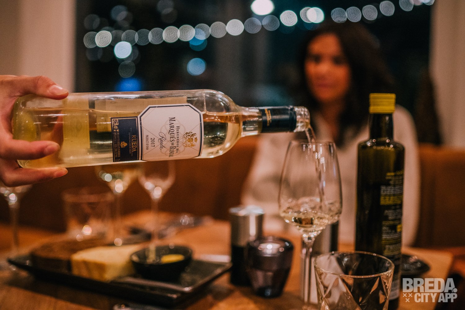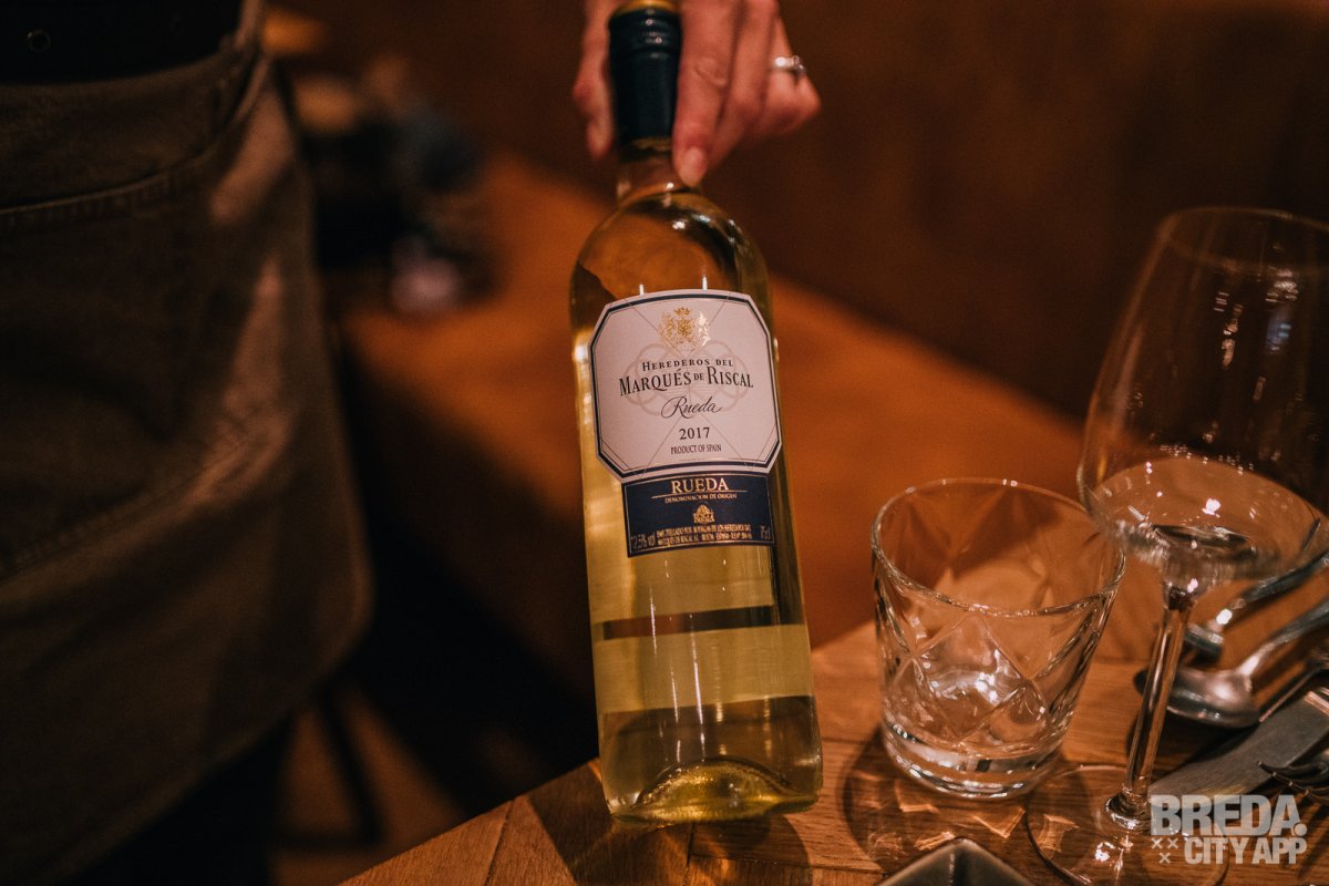 We drinken hierbij een Rueda van Marques de Riscal. Deze wijn heeft een zeer aromatische geur van tropisch fruit en hints van bloemen en venkel. De frisse smaak is zacht en kent een licht bittertje die typisch is voor deze druivensoort. Een mooie tegenhanger van de romige bisque.