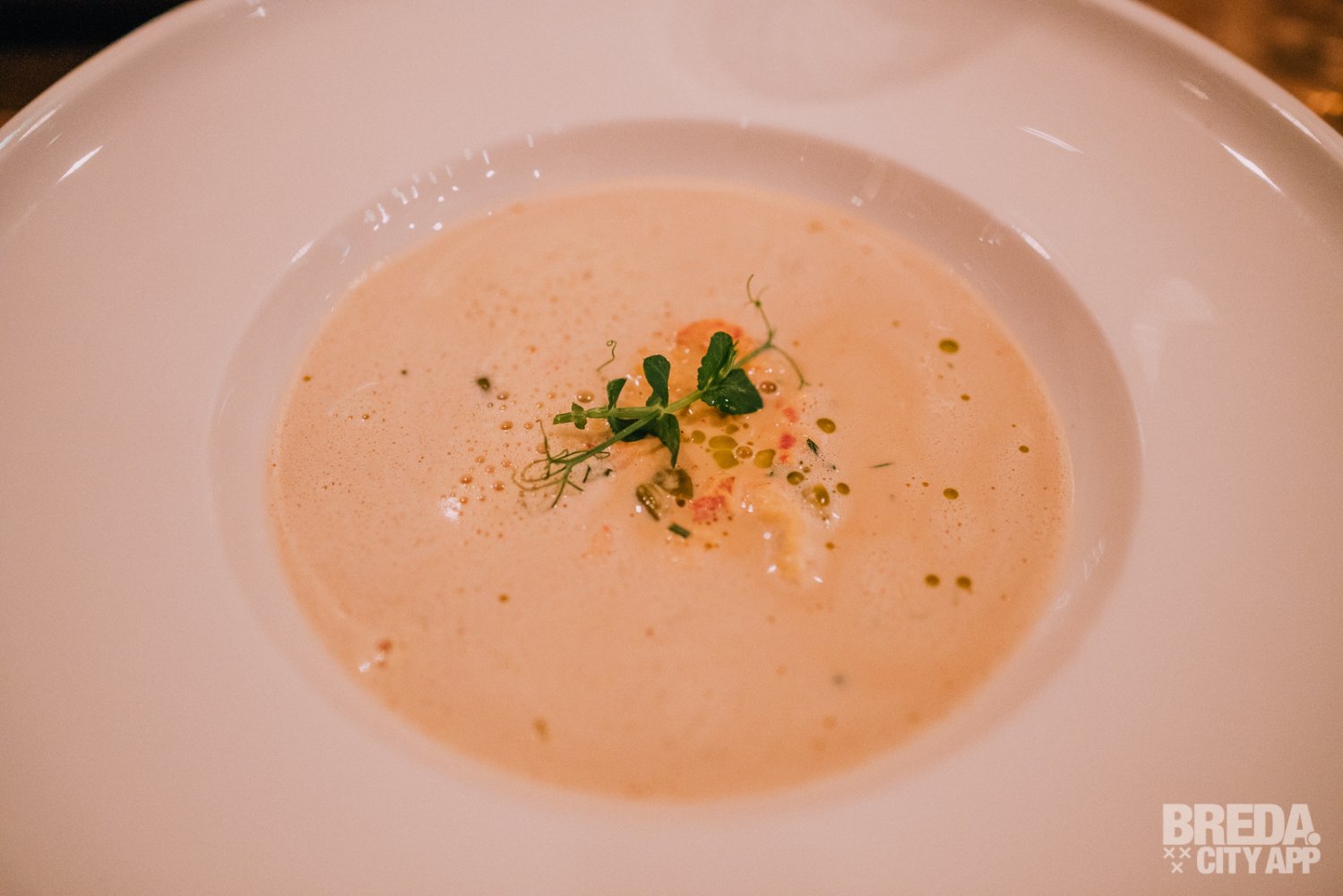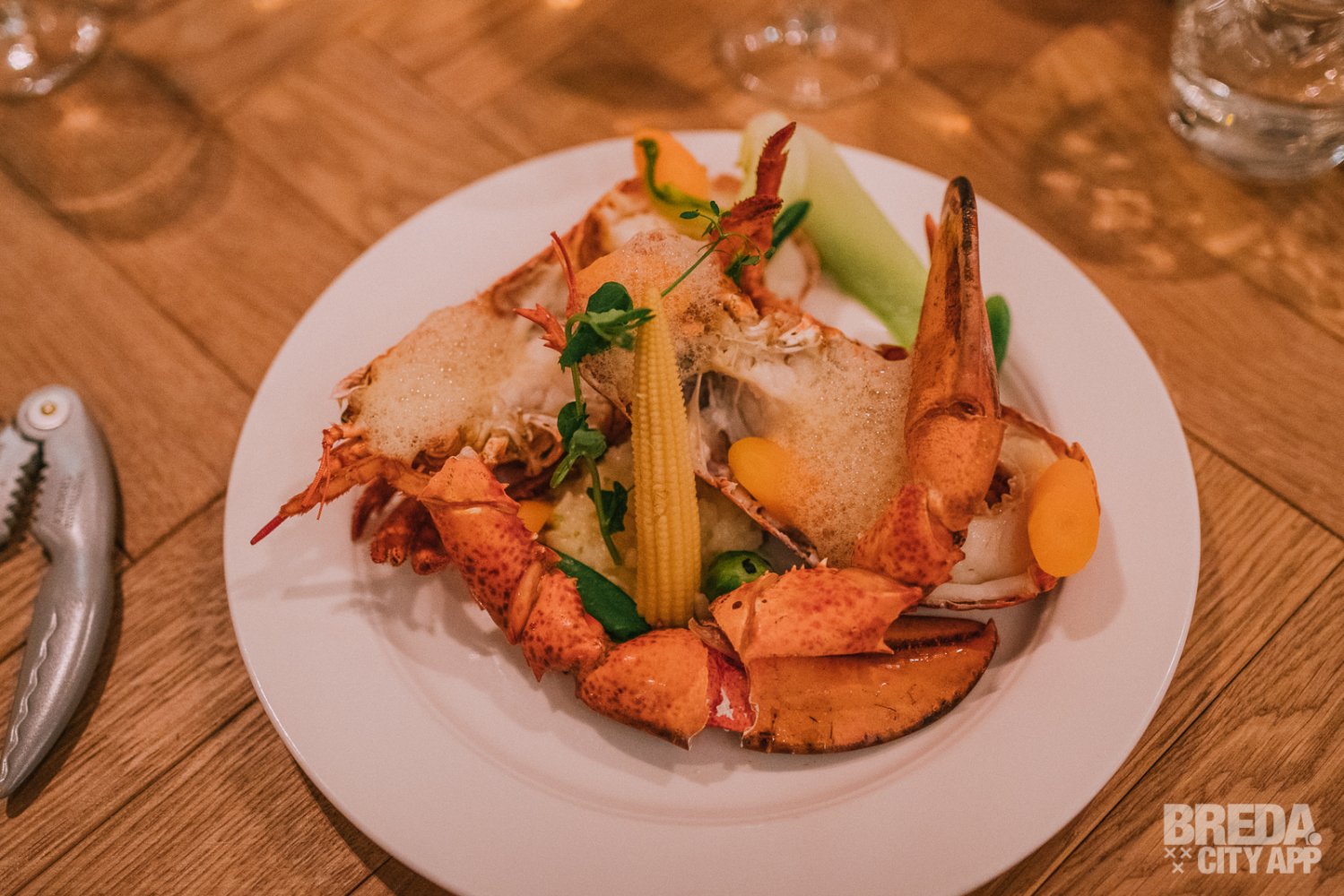 De kreeft wordt geserveerd met een schuim van kreeft en is perfect gegaard. Het vlees is mals en heerlijk van smaak, als je van kreeft houdt moet je hier zeker zijn de komende maanden!