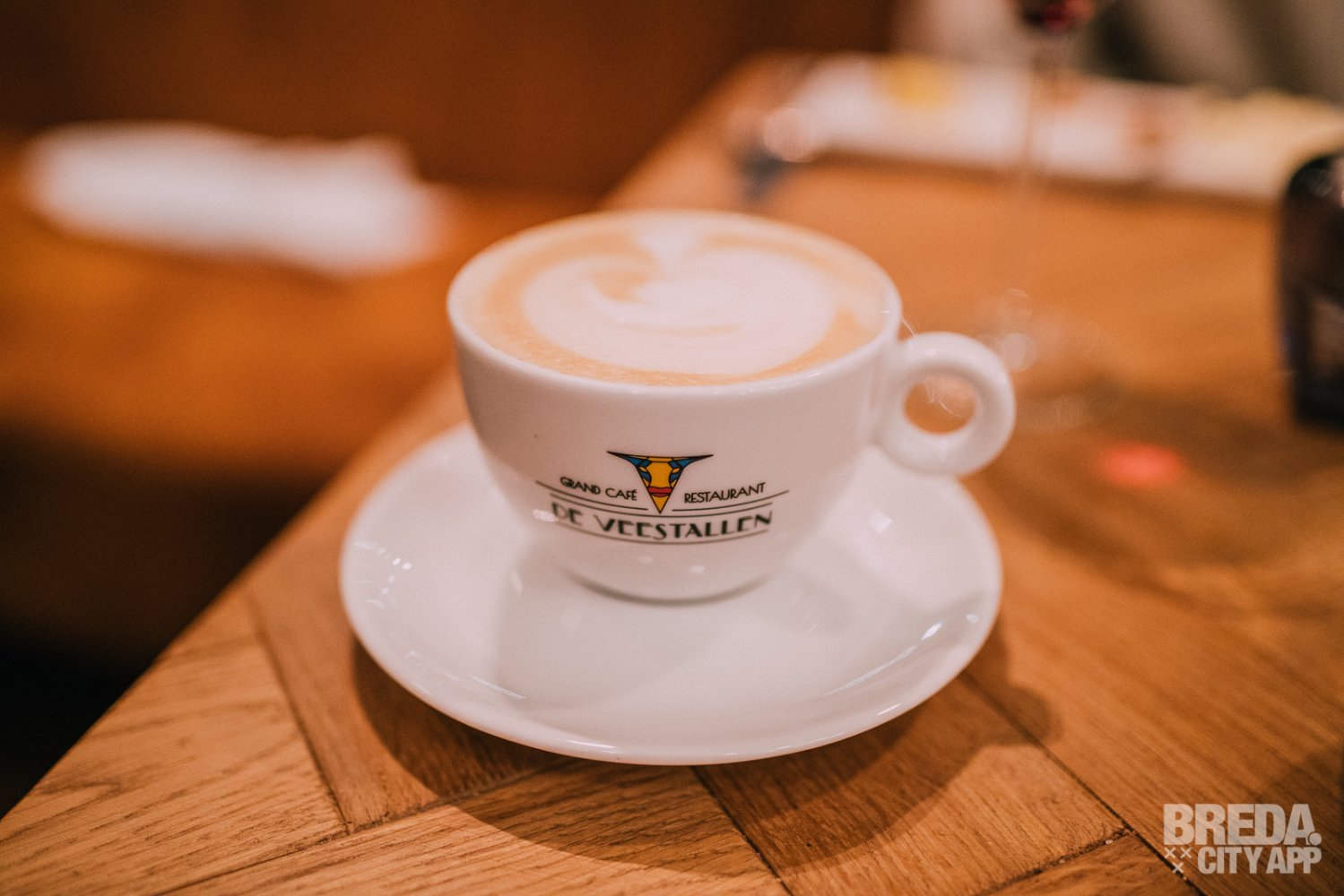 Zeer voldaan sluiten we het diner af met een heerlijke cappuccino. Op de kop zien we het logo, wat je ook kunt herkennen in het glas in lood boven de grote raampartij.  De Veestallen is een prachtige zaak met een interieur dat helemaal van deze tijd is. Het eten wordt met zorg bereidt en mooi gepresenteerd op de borden, we proeven een finesse die je vaak alleen bij de verfijndere restaurants krijgt. De prijzen bij de Veestallen zijn echter zeer toegankelijk, wat ons betreft is het diner bij de Veestallen daarom absoluut een aanrader!