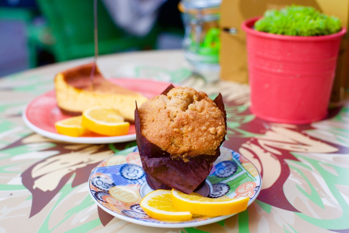 Bagels & Beans staat uiteraard ook bekend om haar gebak. Wij kozen voor de huisgebakken cheesecake en de appel muffin. Het meeste gebak wordt centraal door Bagels & Beans gebakken, maar de cheesecake bakken ze nog zelf in deze vestiging. De bodem bestaat uit een krokante crumble bodem met een heerlijke  smeuïge cheescake laag. Als je van cheescake houdt moet je deze zeker proberen!