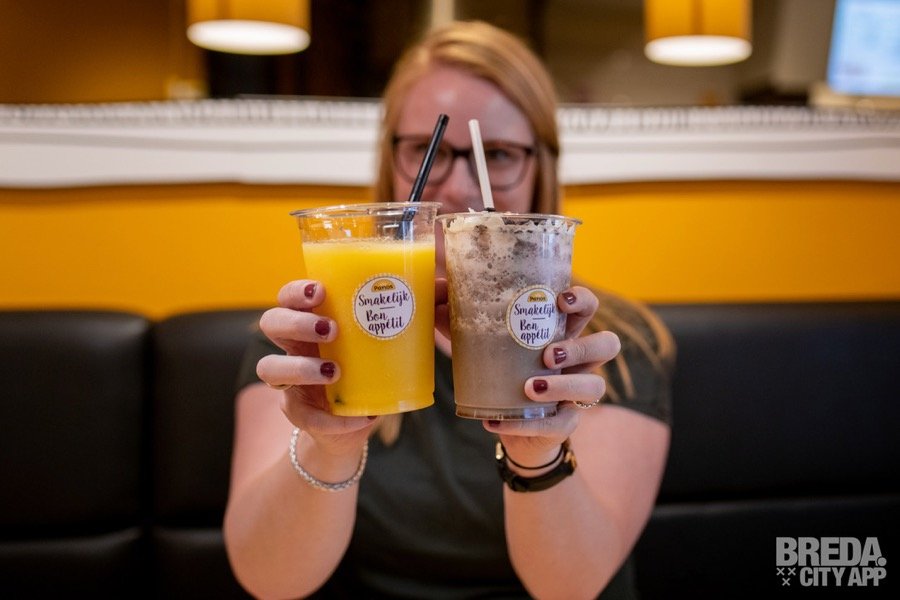 Na het eten van deze heerlijke broodjes sluiten wij af met een; 'Oreo Frappé & een IJssmoothie Mango'. De Oreo Frappe is iets minder gezond, maar dat compenseert weer met de gezonde Avocado Boost, toch!? Dit drankje heeft een heerlijk romige smaak en is afgetopt met slagroom en kleine stukjes Oreo. De IJssmoothie Mango is lekker fris en een goede afsluiter van deze heerlijke lunch.
