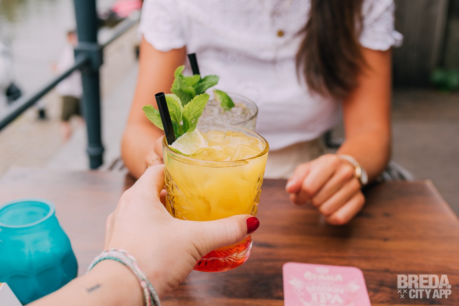 Het is weekend, dus het mag ;)! En cocktails voor €5,00?! Die slaan we niet over. Je vindt onder andere de klassiekers op de kaart, zoals een Gin Tonic en een Mojito, maar Bregje heeft ook een paar andere mooie mixen op de kaart staan. Wij kiezen de fris-zoete ‘Let’s Mango’ en de virgin ‘Split’ cocktail. De eerste is gemaakt van echte De Kuyper Mango, sweet & sour, limoen en spa rood en smaakt helemaal naar de zomer. De limoen en de mango doen het goed samen en de verhouding is mooi in balans. Ben je toch nog niet klaar voor alcohol? Dan is de virgin ‘Split’ absoluut een aanrader. De naam zegt het al, en inderdaad… het smaakt écht naar een split ijsje. De smaken van watermeloen, vanille, sinaasappel en limoen zijn allemaal terug te vinden in dit zomerse drankje. Geen fan van zoet? Kies dan voor een flesje cava, een fles pinot grigio, of pak even de speciaalbier kaart erbij. Er is voor ieder wat wils.