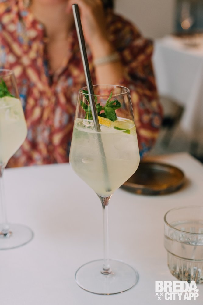 De lunch begint met een verfrissende limoncello spritz, subtiel met een vleugje munt en de sprankelende toets van citroen, perfect begeleid door een amuse.