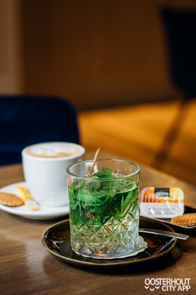 Tom, de eigenaar is net bezig om de haard op te stoken. De aangename warmte komt je gelijk tegemoet en zorgt voor een prettig ontvangst. De gezellige kerstmuziek draagt daar natuurlijk ook aan bij. De altijd vriendelijke Sandra, partner van Tom, ontvangt ons hartelijk en wijst ons de tafel aan het raam met uitzicht op het Binnenhofje. Een leuk weerzien en fijn om bij te kletsen. We krijgen alvast een voorproefje van de nieuwe kaart. Voordat we daar mee starten krijgen we een verse munt thee en cappuccino om verder op te warmen.