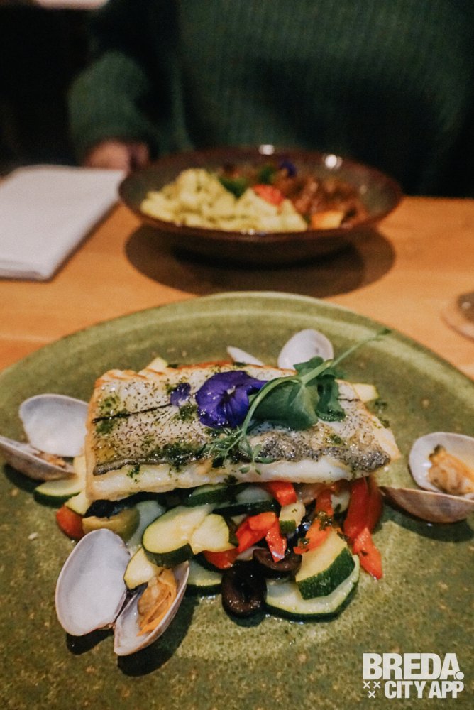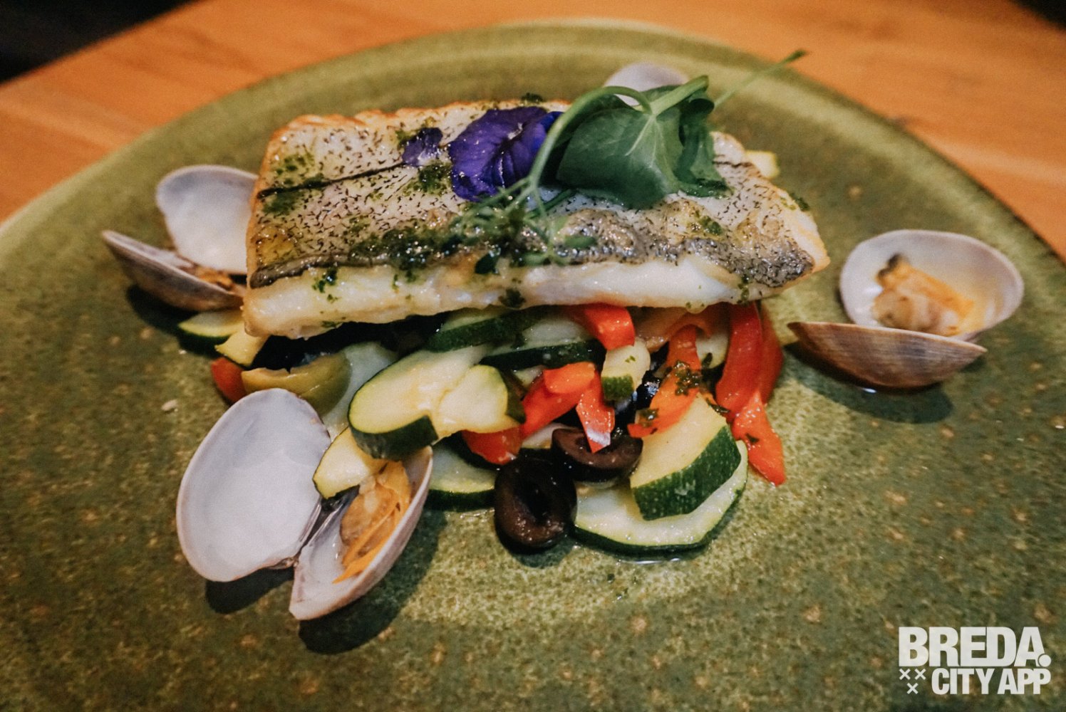 Het andere hoofdgerecht is een mooie Schelvis met vongole. De perfect gegaarde vis wordt geserveerd met knapperige courgette,  paprika en olijven. Hierbij wordt een bijpassende chardonnay geserveerd die de smaken van dit gerecht ten goede versterkt.