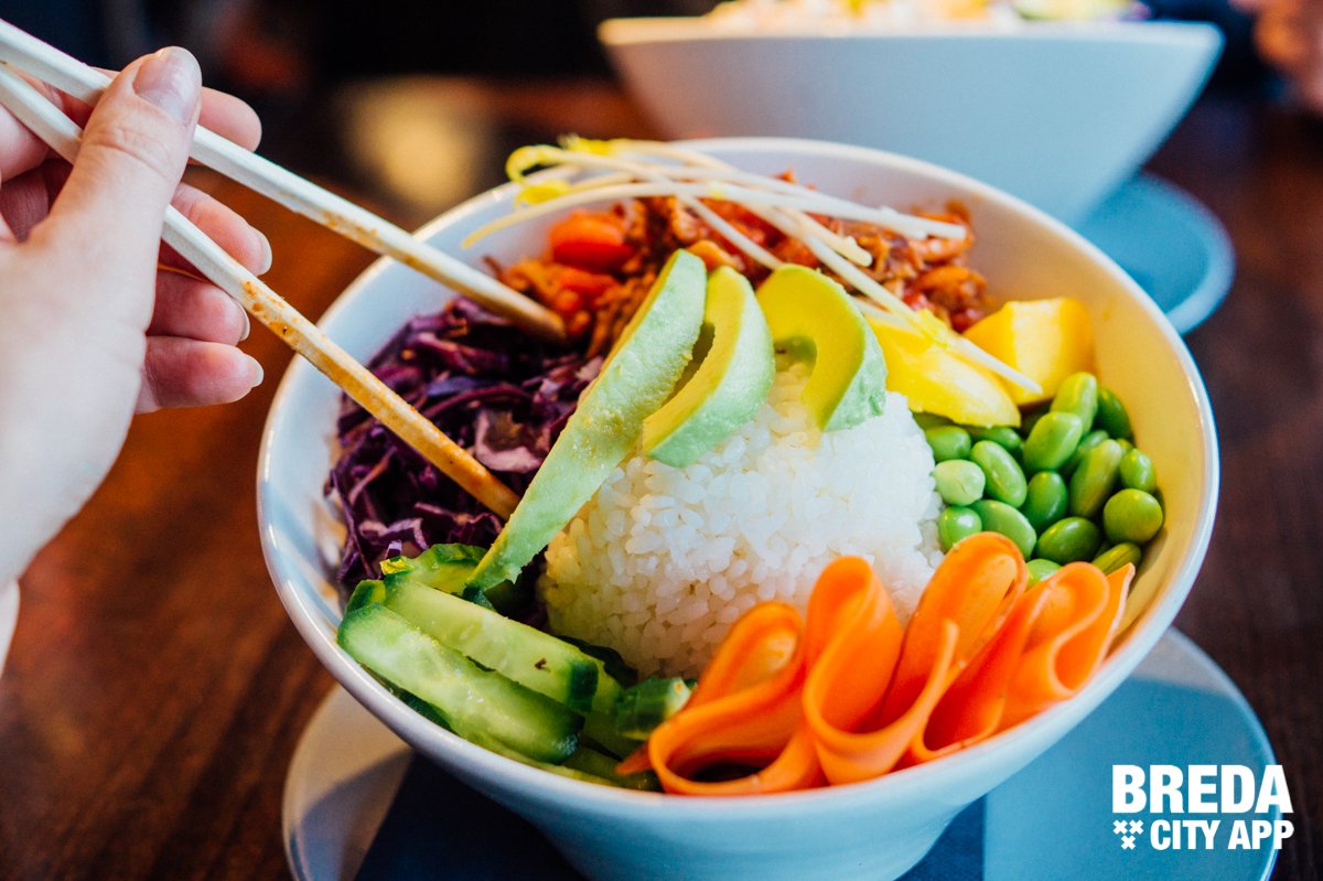 Neem trouwens lekker de tijd voor je poké bowl. Je eet hem met stokjes en het is een flinke portie. Helemaal niet erg, want het is onwijs genieten en ook nog eens super gezond. Ik zou zeggen: ‘Go catch ‘em all!’