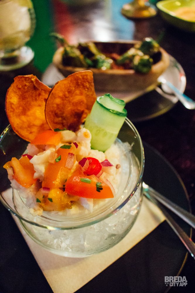 Voor wie ceviche nog niet kent (shame on you!): ceviche is een gerecht van rauwevis, gemarineerd in de zogenaamde tijgermelk. Dat is een mengsel van citroen, peper en knoflook. Door de zuurgraad in deze marinade gaart de vis en kan de smaak zich optimaal ontwikkelen. Je proeft dit dan ook in het gerecht terug: een frisse en zachte kabeljauwsmaak.