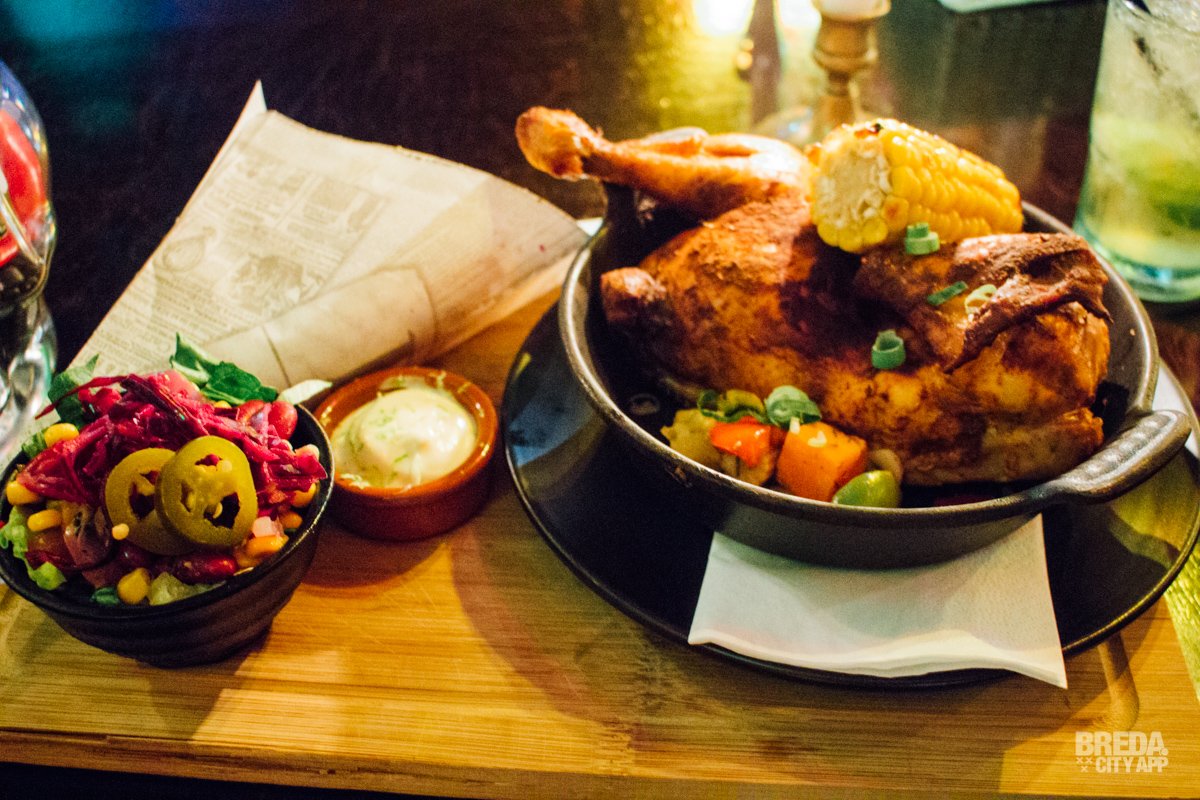 Op de menukaart viel mijn oog op het gerecht pollo picante: een halve gegrilde kip, met heerlijk gekruide frietjes en drie zelfgemaakte salsa’s.