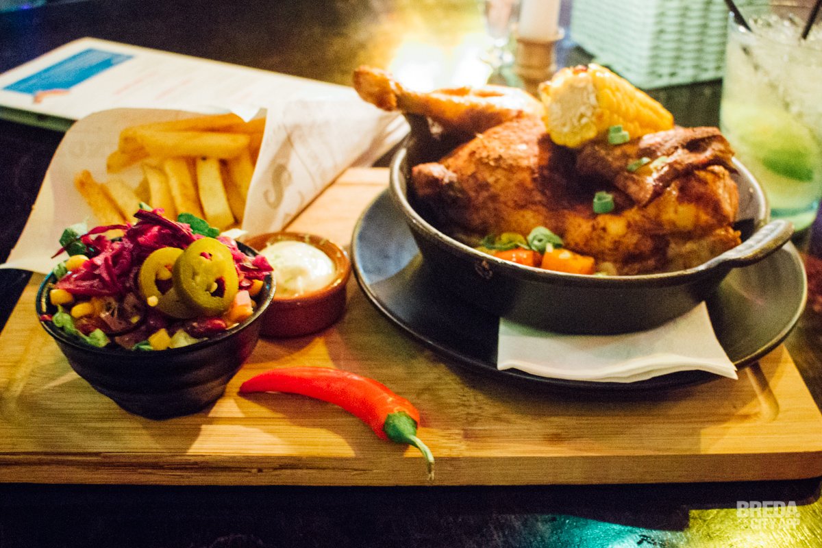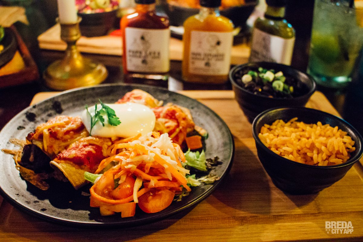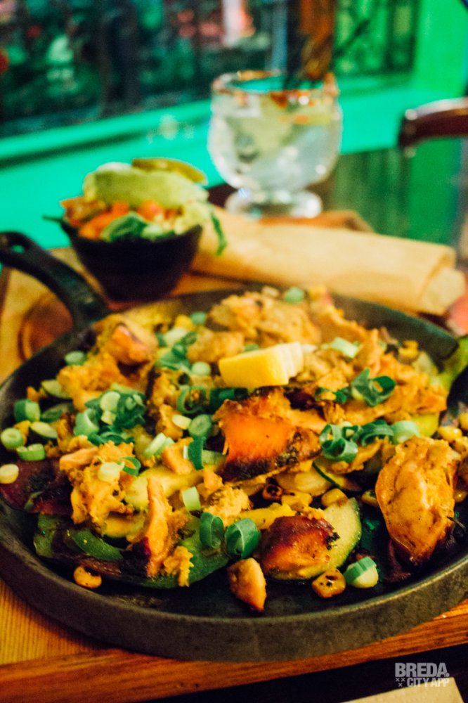 Bij Popo Breda serveren ze fajitas op een hete bakplaat en je mag de tortillas zelf vullen met de mals gegrilde kip, rajas (gekruide groenten), guacamole en zure room. Eet de fajitas vooral met je handen. Ik verzeker je dat je je vingers zal aflikken, want ook dit gerecht is om van te smullen!