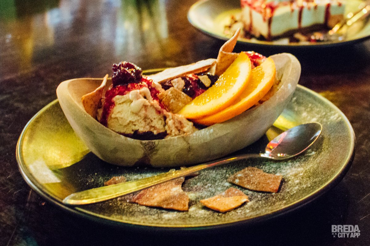 Tapachula en avocado-cheesecake zijn onze desserts voor deze avond. Tapachula is gerecht van kaneelijs, bosvruchten en limoen.