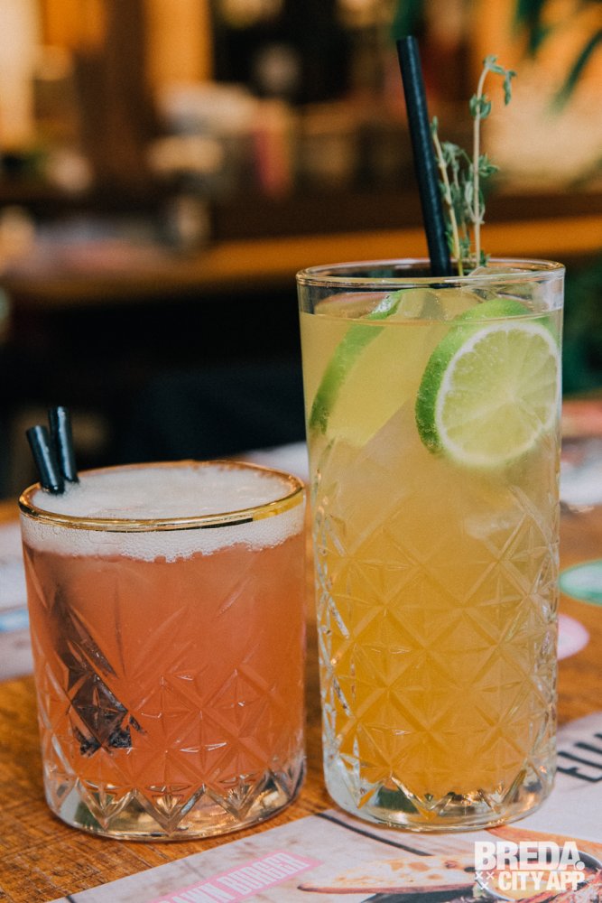 We beginnen de avond met een cocktail; mijn tafelgenoot neemt een alcoholvrije Son of a Peach met perziksap, honing, vlierbloesem, karwijzaad, sinaasappelbloesem en bruiswater met als finishing touch een takje tijm en een limoenschijfje. Een verrassend friszoete combinatie in een longdrink glas, waarin duidelijk de verse ingrediënten en een toefje vakmanschap te proeven is. Ik ga zelf voor iets sterkers, een Rumble in the Jungle; rum, Aperol, Campari, ananaslikeur, een cranberry bittertje, afgetopt door Yuzu schuim geserveerd in een tumbler. Volgens Iwin een hele goed keuze en daar is geen woord van gelogen. Onze gastheer weet duidelijk waar hij het over heeft, want de cocktail smaakt zeker naar meer.
