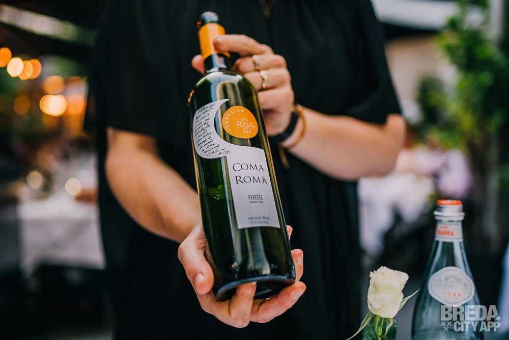 We drinken bij dit gerecht de Xarel-lo Coma Romà: een frisse witte, licht fruitige wijn gemaakt van 100% Xarel-lo (één van de drie gebruikte witte druivenrassen voor een traditionele Cava).