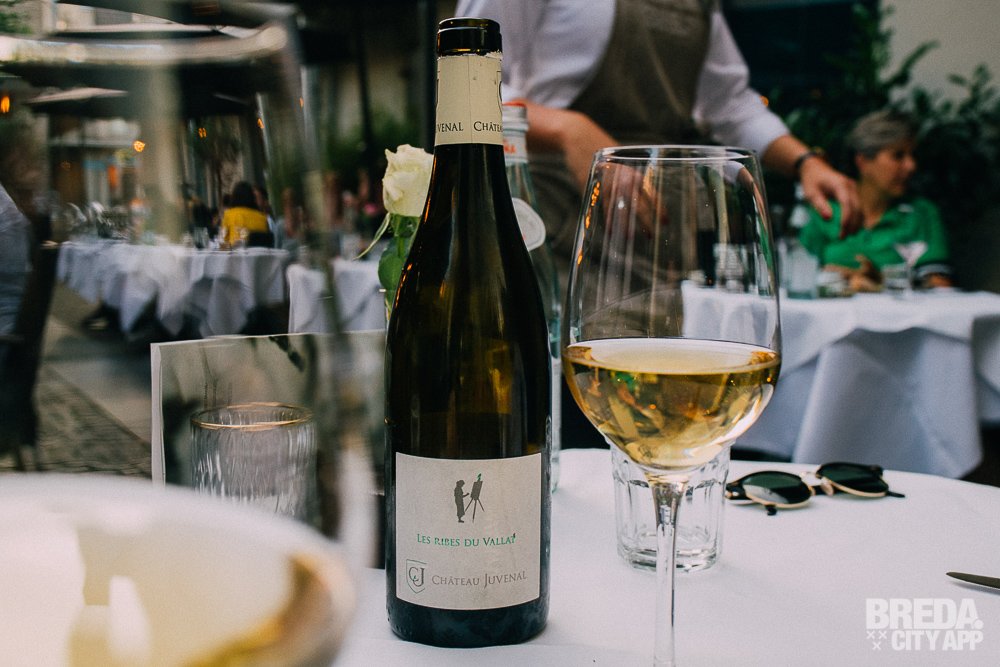 We drinken bij dit gerecht een witte wijn van Les Ribes du Vallat, een witte wijn met tonen van wit fruit, perzik, gedroogde groene kruiden, venkel en vanille met een lichte minerale toets.