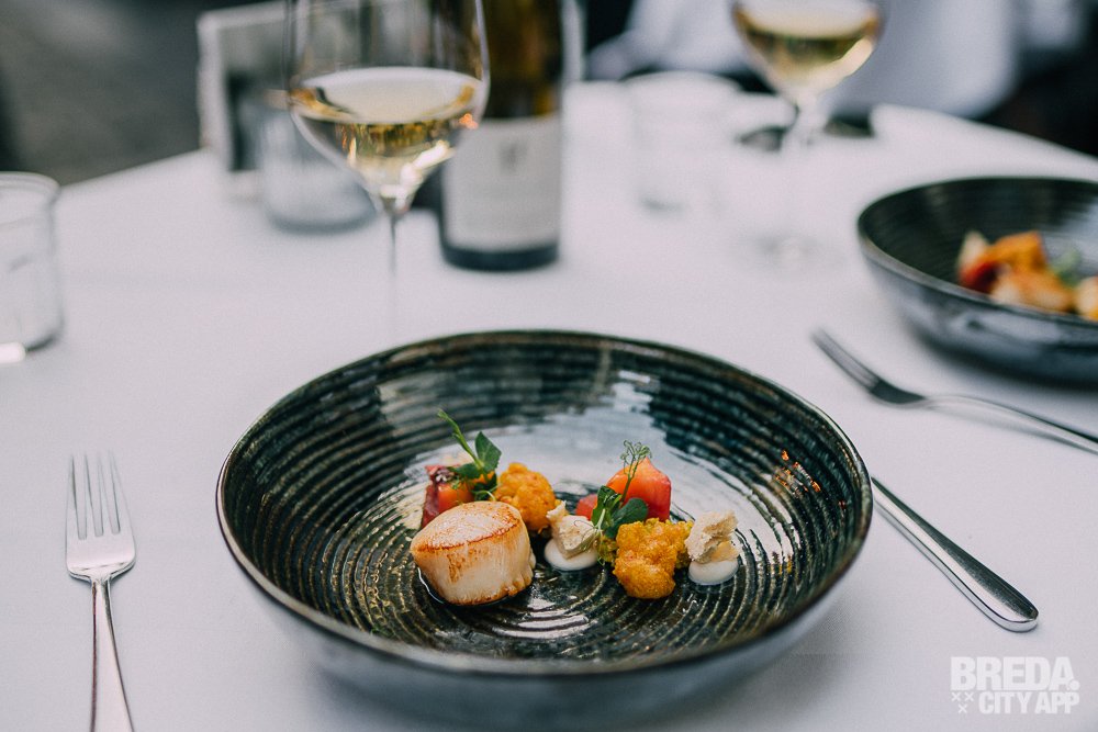 Dineren bij Chocolat is altijd een feestje! Deze keer nemen we plaats in de sfeervolle binnentuin aan 't Sas. Hier worden we vriendelijk ontvangen door gastvrouw Loesje, een absolute horecatopper die haar gasten graag in de watten legt. Vanavond mogen we genieten van het 5-gangen summervibes menu met bijpassend wijnarrangement. We starten met een heerlijk sprankelend aperitief.