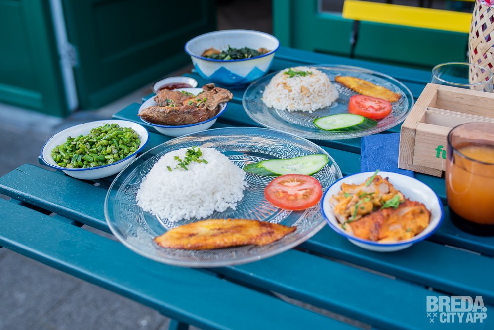 Als je gaat eten bij Moksie Djarie is het net of je even in Suriname bent. Het eethuis is ingericht met veel Surinaamse invloeden en er wordt ook Sranang poku, oftewel Surinaamse muziek, afgespeeld op de achtergrond. Zij zijn een echt familiebedrijf. Buiten de drie zussen die voor je klaarstaan, werken hun kinderen ook mee in de keuken en bediening.