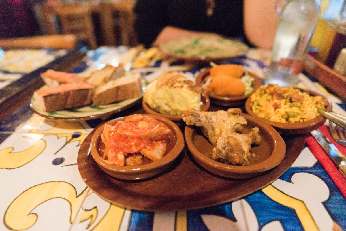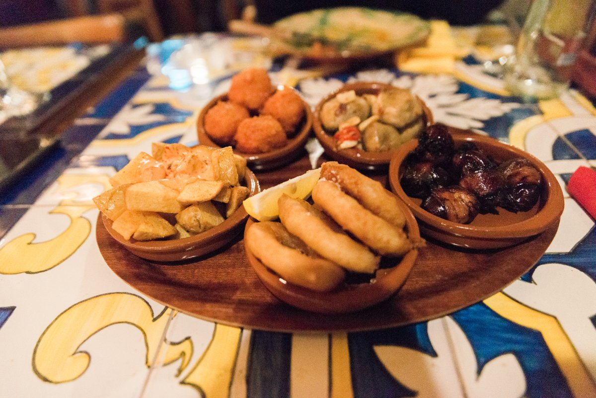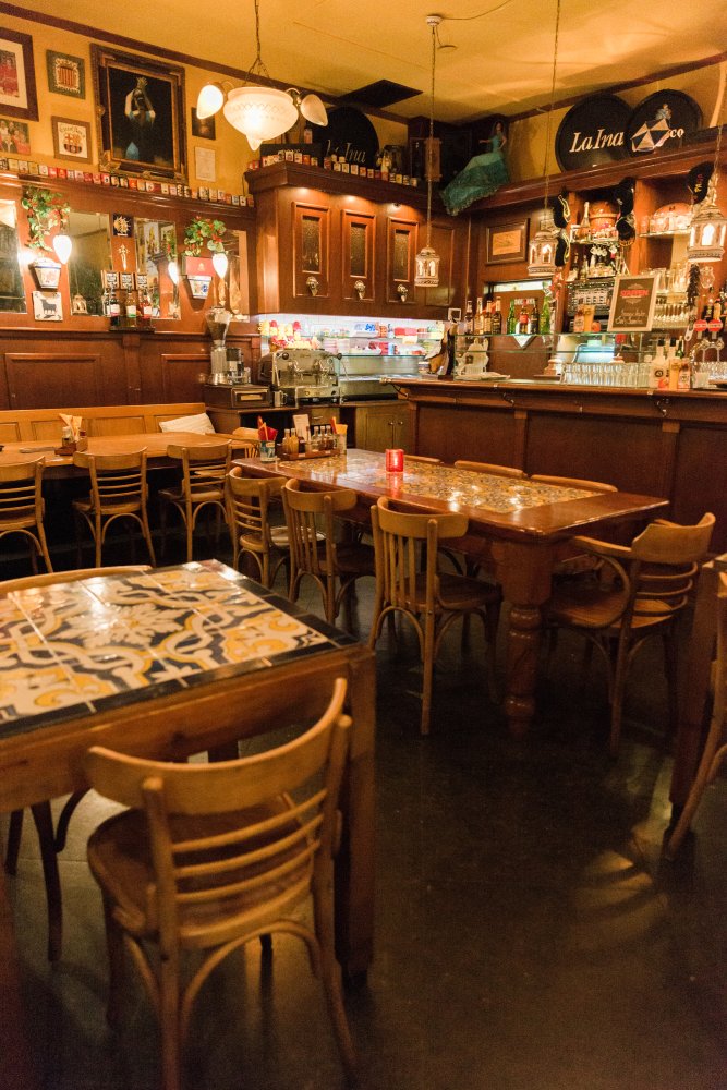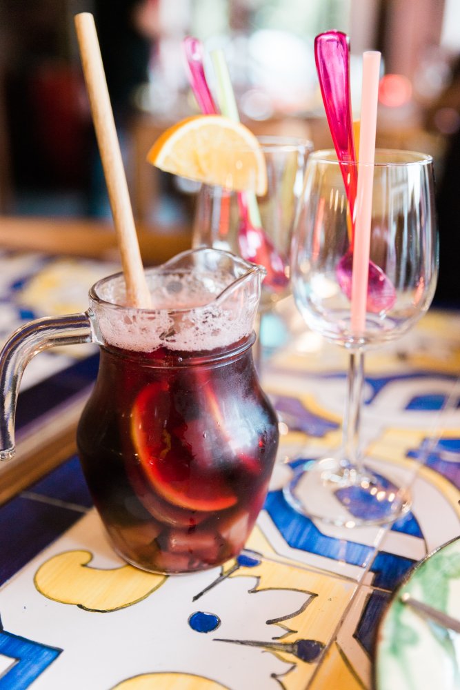 Soy Y Sombra is één van de weinige restaurants waarbij ik het gevoel had echt in Spanje te zijn. Het interieur is precies zoals je zou verwachten: gezellig druk met veel lijstjes aan de muren en beeldjes die je terugbrengen naar Spanje. Een leuk detail vond ik de kleurrijk betegelde tafeltjes, waar ook wij aan plaats mochten nemen.