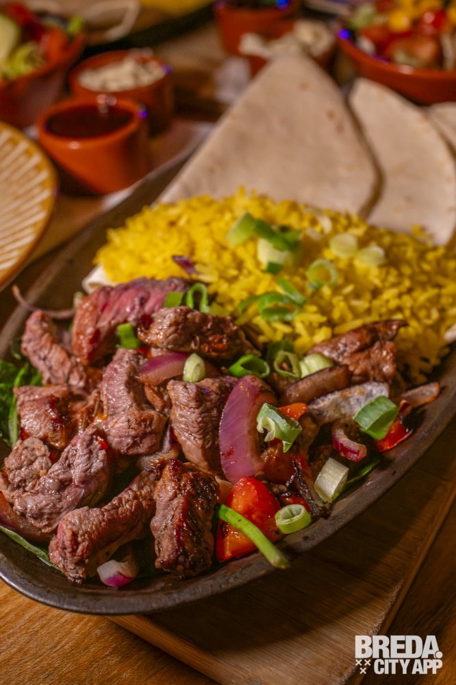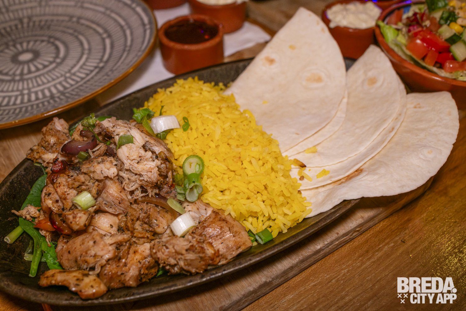 Eigenaar Erik vertelt vol trots dat hij al enkele keren naar Mexico is gegaan om te genieten van al het moois wat dit land te bieden heeft, maar ook zeker inspiratie op te doen voor de gerechten van Tortillas. Zo krijgen we de fajitas als hoofdgerecht aangeraden: één met pulled chicken en één met malse runderhaas. Beiden worden geserveerd op een hete bakplaat met gebakken ui en paprika. Daarnaast een Mexicaanse salade, rijst, warme tortillas, knoflooksaus en chipotle BBQ-saus. Het is de bedoeling dat deze fajita's zelf gevuld worden met deze verschillende ingredienten, precies zoals ze dat in Mexico ook vaak met eten doen: vullen met de hand! Onder het genot van een zelfgemaakte sangria genieten we van onze hoofdgerechten.