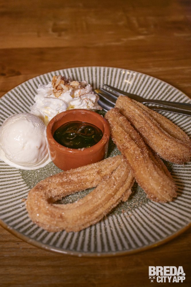 De Mexicaanse muziek op de achtergrond laat ons wegdromen en ook wij hebben het gevoel vanavond even op vakantie te zijn! We sluiten ons feestelijk diner af met churros en een chocolate delight. De churros zijn een heerlijke verwennerij voor de zoetekauw onder ons met kaneelsuiker, een bolletje vanille roomijs, chocoladesaus en slagroom. Ook de choclate delight, een flinke coupe heerlijke zelfgemaakte chocolademousse met slagroom, is een hardloper van Tortillas. Zorg er dus voor dat je nog ruimte over houdt voor een dessert, want hoe onmisbaar een dessert ook is: vullend zijn ze zeker!