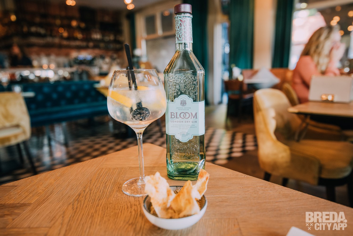 Als start van deze avond kiezen wij voor een traditionele Gin-tonic geserveerd met schijfjes citroen. Mijn tafelgenoot kiest voor een wat meer bloemige variant met sinaasappelschijfjes en Bloom London dry gin, wat overigens uit een prachtige fles wordt uitgeschonken! Nadat wij geïnstalleerd zijn met deze twee frisse drankjes krijgen wij een aperitiefhapje. Dit bestaat uit knapperige gekruide papadum met huisgemaakte baba ganoush, je proeft hierin de typisch gerookte aubergine smaak, lekker!