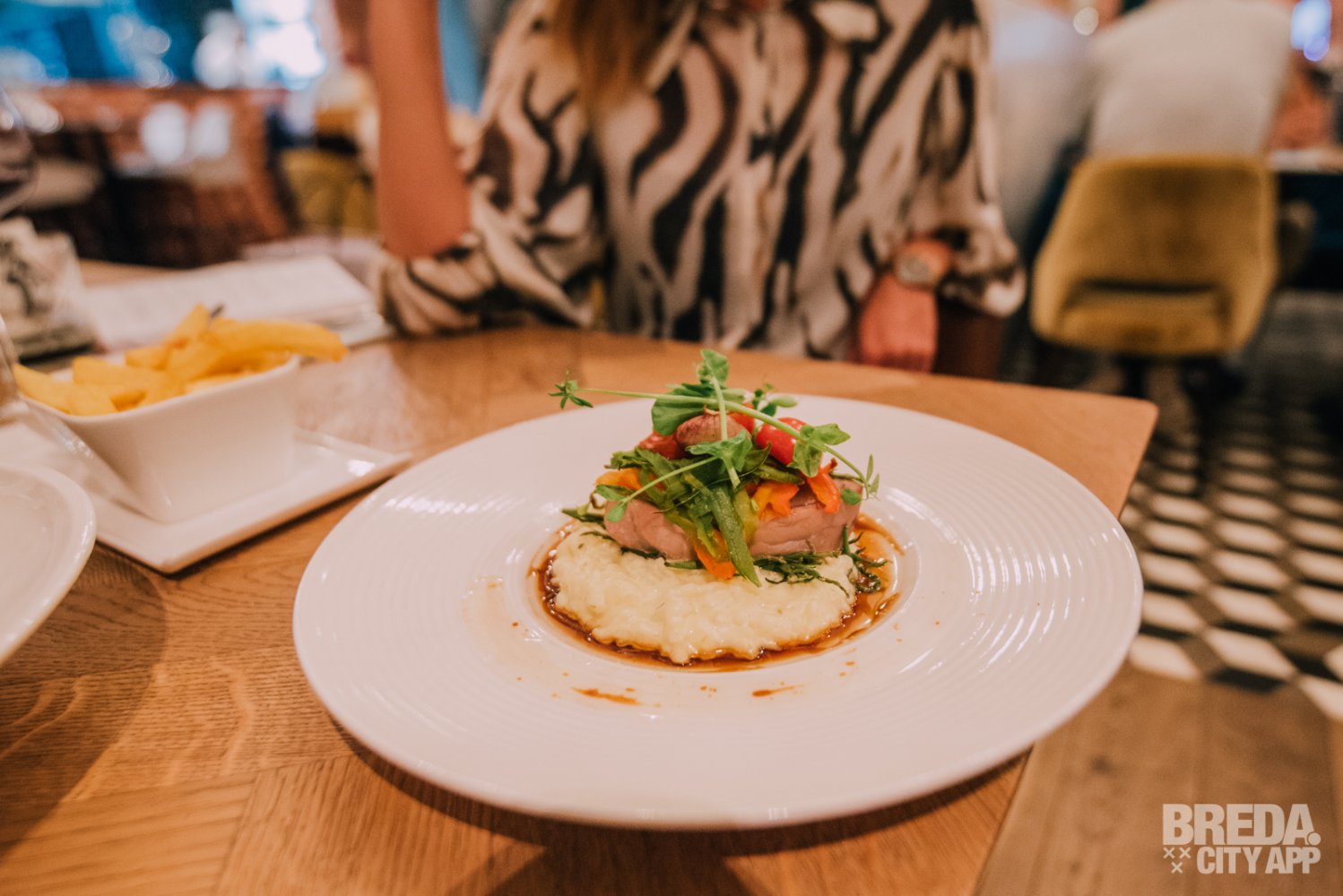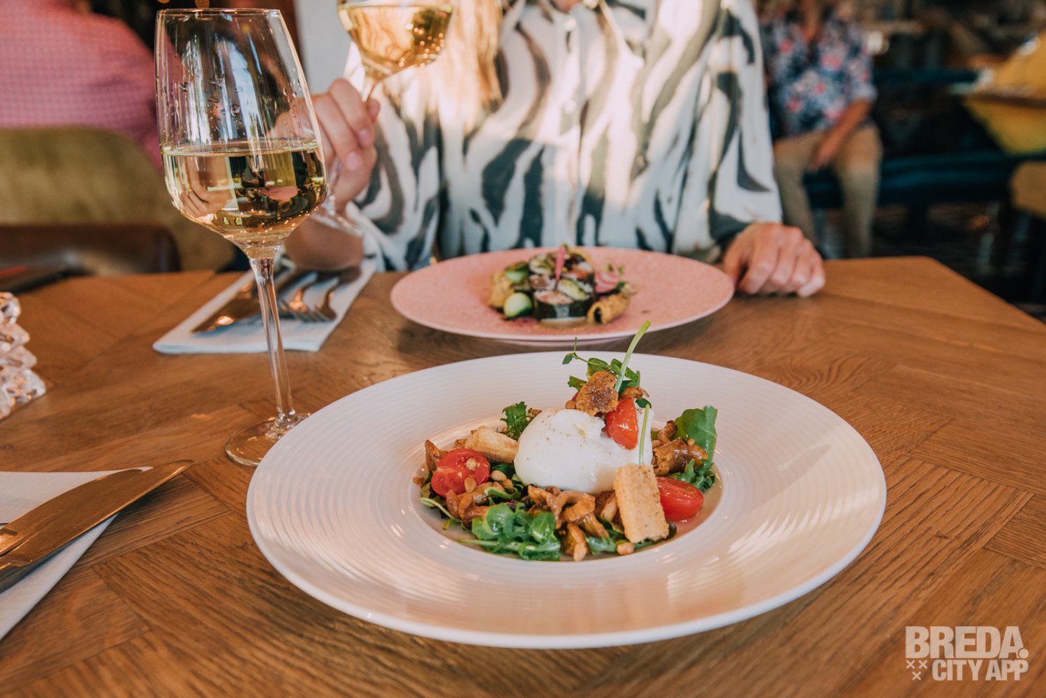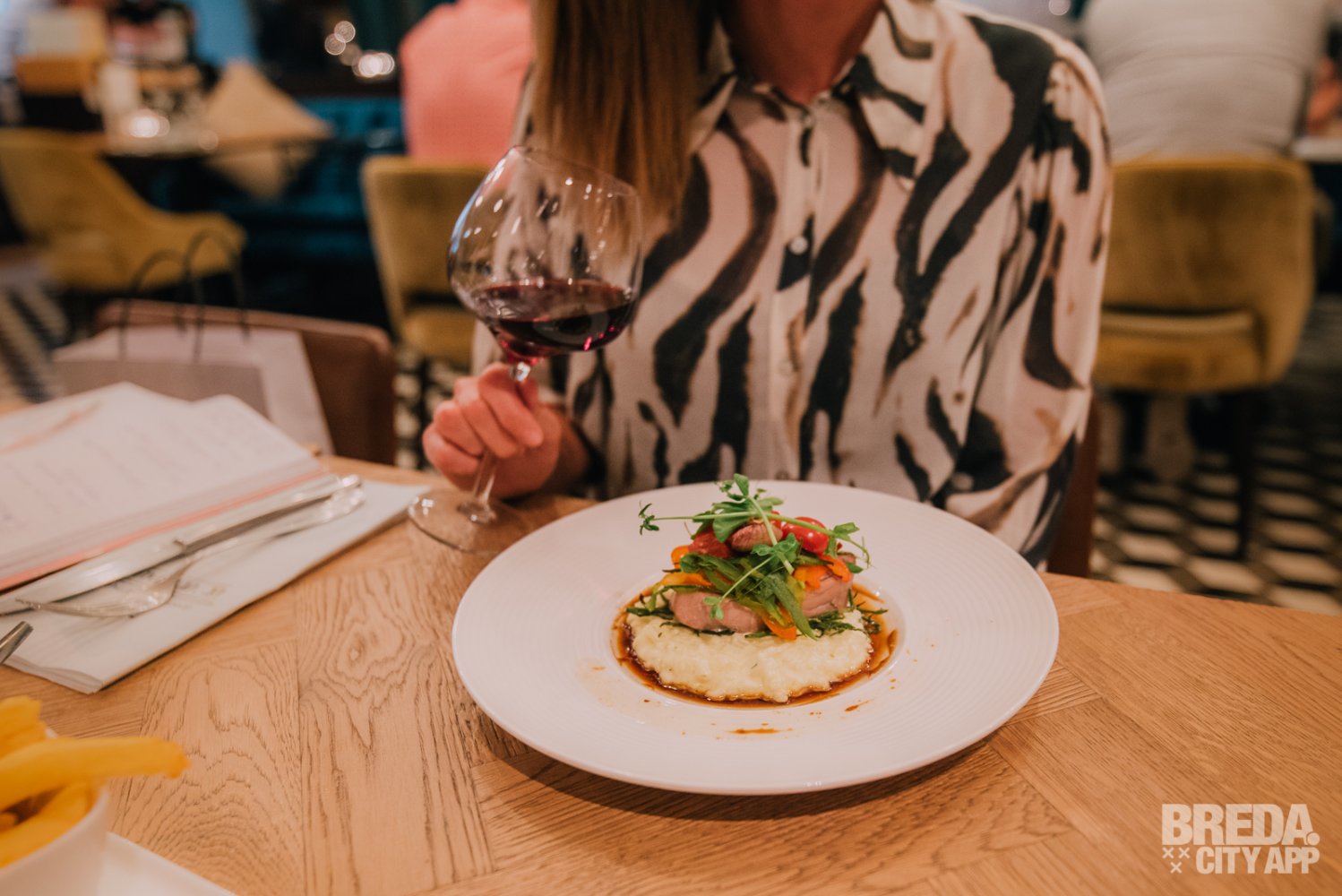 Maandagavond, een wat minder subtropische dag dan de afgelopen weken. Perfect voor een uitgebreid diner en lekker bijkletsen bij de Veestallen in Breda. Wij zijn deze avond uitgenodigd om de gerechten van de vernieuwde dinerkaart te proeven.