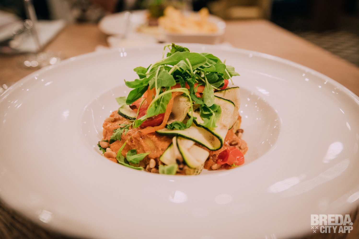 Niet veel later komen onze hoofdgerechten op tafel. We beginnen met een Cannelloni van spinazie, ricotta, mozzarella, geitenkaas tomaat en rucola. Deze pasta is heerlijk smeuïg en heeft ook een lekkere bite!