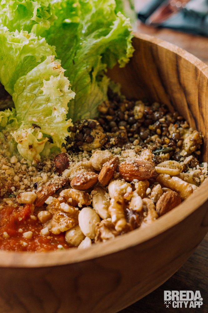 Op de menukaart is direct goed te zien dat groenten en noten hier de hoofdrol spelen. Er is volop keus uit spraakmakende healthy lunchgerechten zoals vers gebakken zuurdesembrood met verschillende toppings, diverse bowls, soja yoghurt met homemade granola en nog veel meer. En: it’s all vegan! Ik ben zelf niet veganistisch of vegetarisch, maar wel voorstander van een gezonde levensstijl waarbij vlees zeker niet dagelijkse kost hoeft te zijn. Ik voel me daarom goed op mijn plek vandaag. Mijn tafelgenoot komt hier vaker en vertelt enthousiast dat dit echt een walhalla is voor veganisten. Je kunt hier namelijk alles kiezen wat op de kaart staat zonder erover na te denken. Dat is schijnbaar een unikum in vegan world.