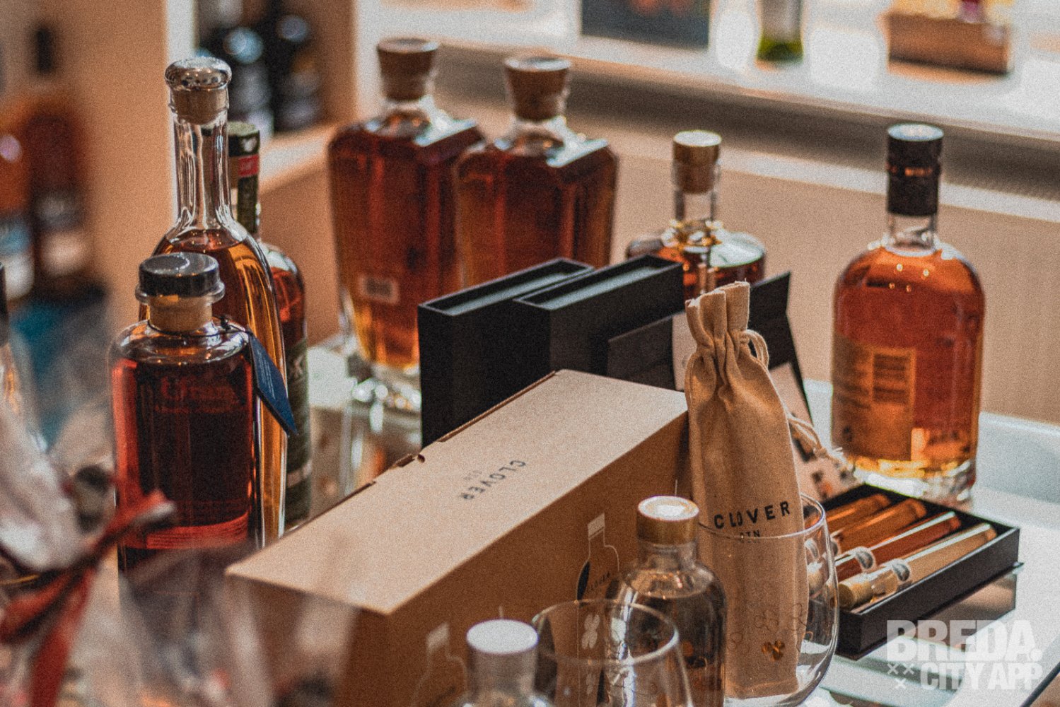Verscholen tussen de verschillende eettentjes aan de Nieuwe Ginnekestraat, vinden we het prachtige herenhuis van Whisky & Gin. We werden vriendelijk ontvangen door Pauline en bij binnenkomst trok de winkel met slijterij meteen onze aandacht. Deze is verdeeld in een winkelgedeelte waar je o.a. prachtig glaswerk en andere geschenken kunt vinden, evenals een slijterij gedeelte waar menig whisky liefhebber zich waant in een heuse snoepwinkel. Welk soort whisky (of gin of andere sterke drank zoals rum, Cognac, grappa of mezcal natuurlijk) je ook zoekt, de kans is groot dat je deze bij Whisky & Gin gaat vinden.