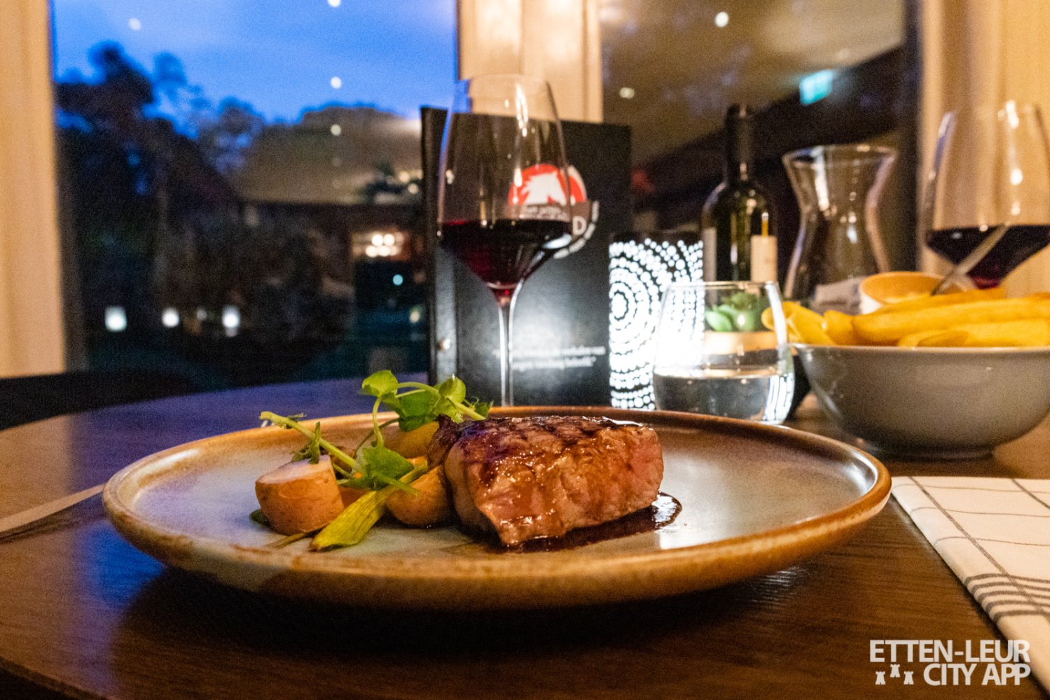 Voor de tweede gang kozen we een entrecote in rode wijnsaus met seizoen groente. De entrecote was medium gebakken en hierdoor lekker mals. De rode wijnsaus gaf het vlees een mooie smaak, zeker in combinatie met de eerder gekozen rode wijn.