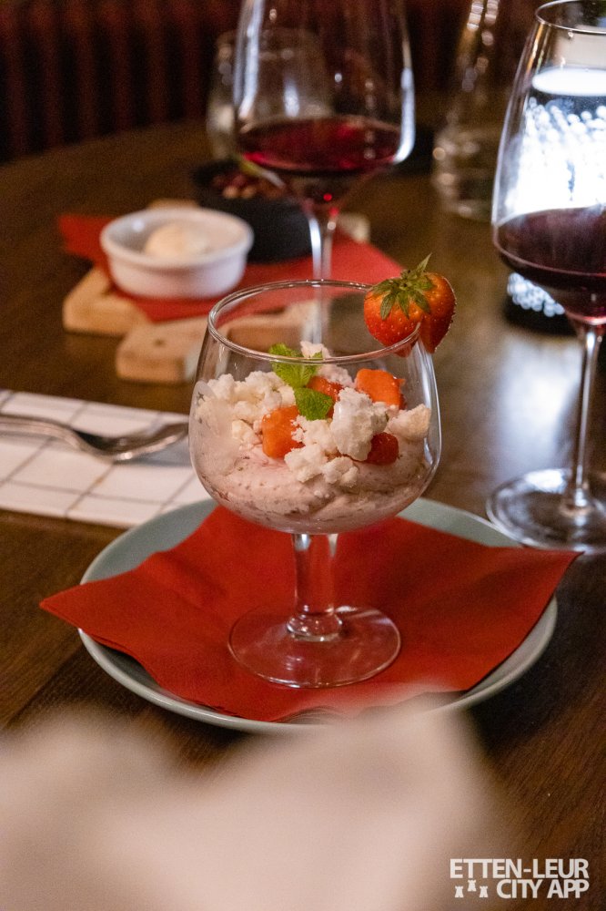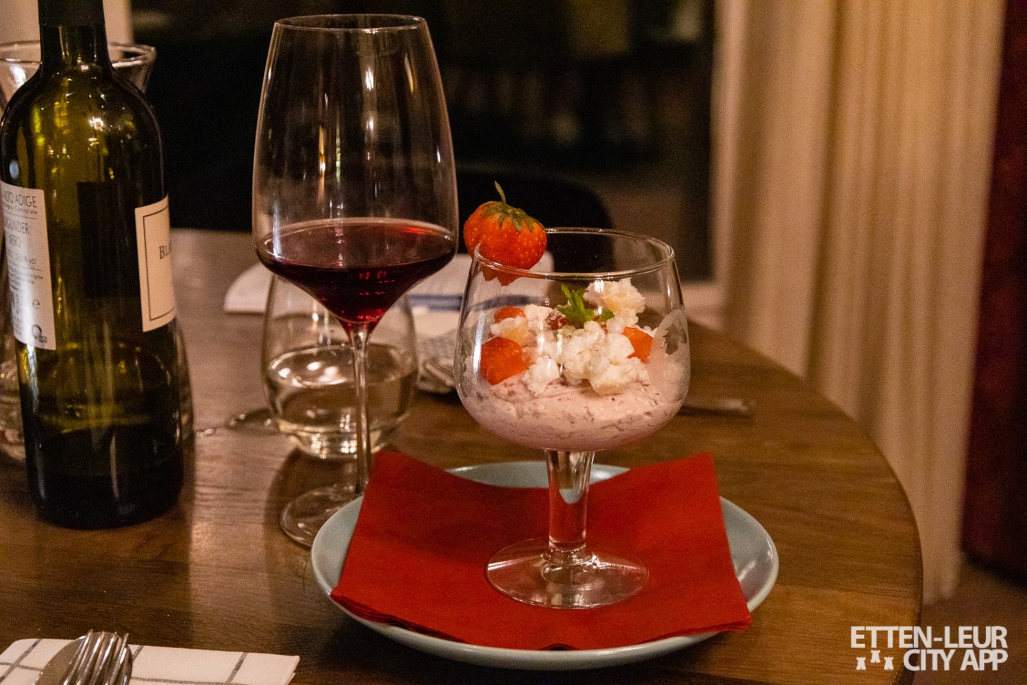 Naast de cheesecake verscheen een romanoff met verse aardbeien. De romanoff zoet van smaak en fruitig door de aardbei. We sloten de avond af met een fijne avondwandeling, het was een warme herfstavond en we kijken terug op een gezellige avond met het vriendelijke personeel van Het Witte Paard.