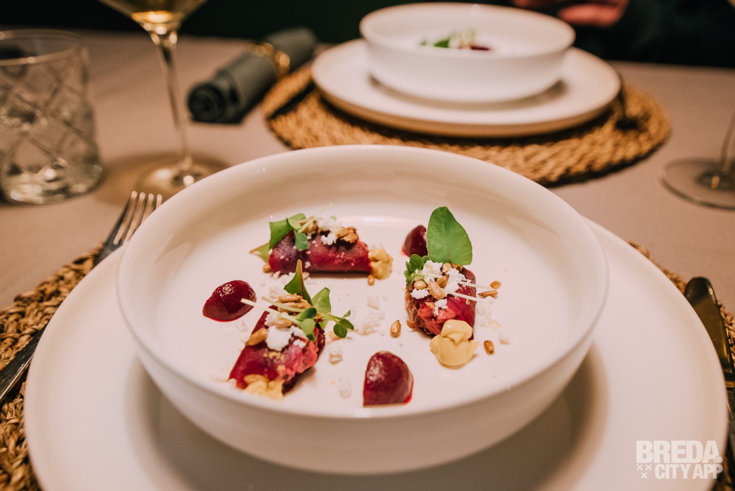 Het gerecht valt meteen goed in de smaak. Wat een mooie combinatie van steaktartaar met de biet en de vadouvan. Iets wat je zelf niet snel bedenkt, maar een echte aanrader! Het gerecht is daarnaast afgemaakt met feta, gedroogde eidooier, zonnebloempitjes en verschillende kruiden.