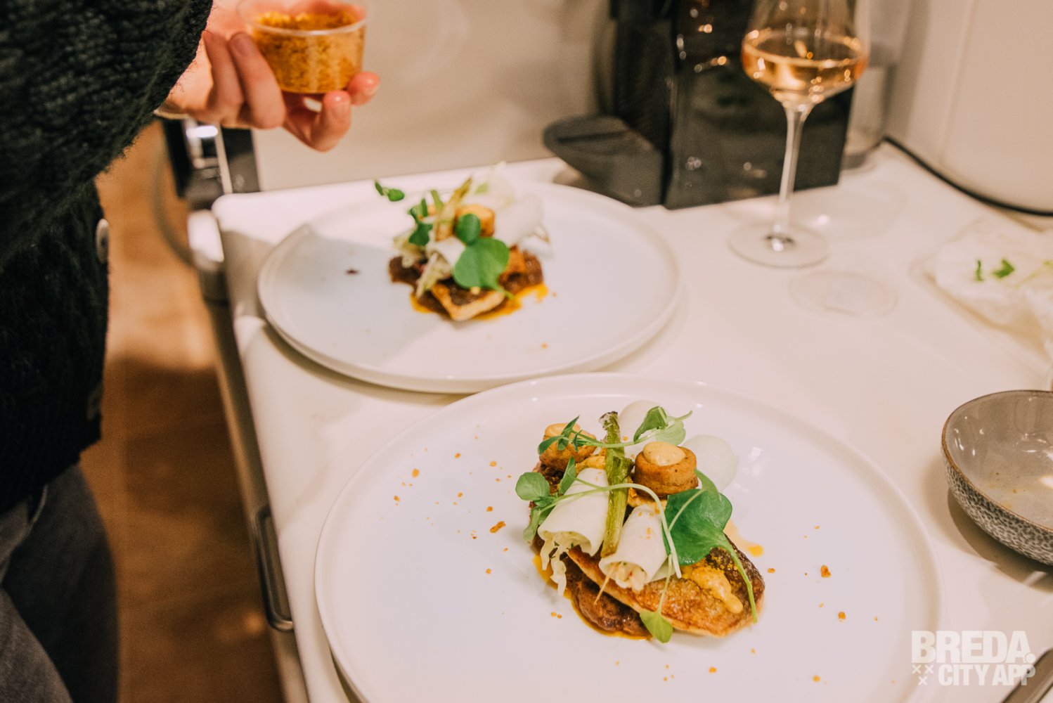 Iets wat niet te missen is in deze tijd van het jaar is naar onze mening toch wel snert. Het tussengerecht bestaat dan ook uit spliterwtensoep. Héérlijk met de truffelroom en de crunch van roggebrood en aardappel. Dit gerecht tilt snert echt naar een hoger niveau, op deze manier hebben we het nog nooit geproefd!