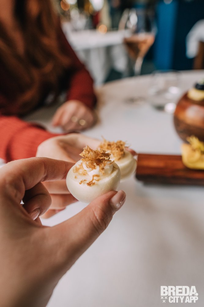 Stuk voor stuk smaaksensaties en heerlijk gecombineerd met de Maria Casanovas brut nature rosé. We nemen de tijd voor de verschillende gerechtjes, er is nooit haast tijdens een diner bij Uijttewaal maar tijdens deze lunch voel je de rust die een zondag met zich meebrengt. We genieten van de zon die binnen schijnt op onze tafel en kunnen niet wachten op de volgende gangen.