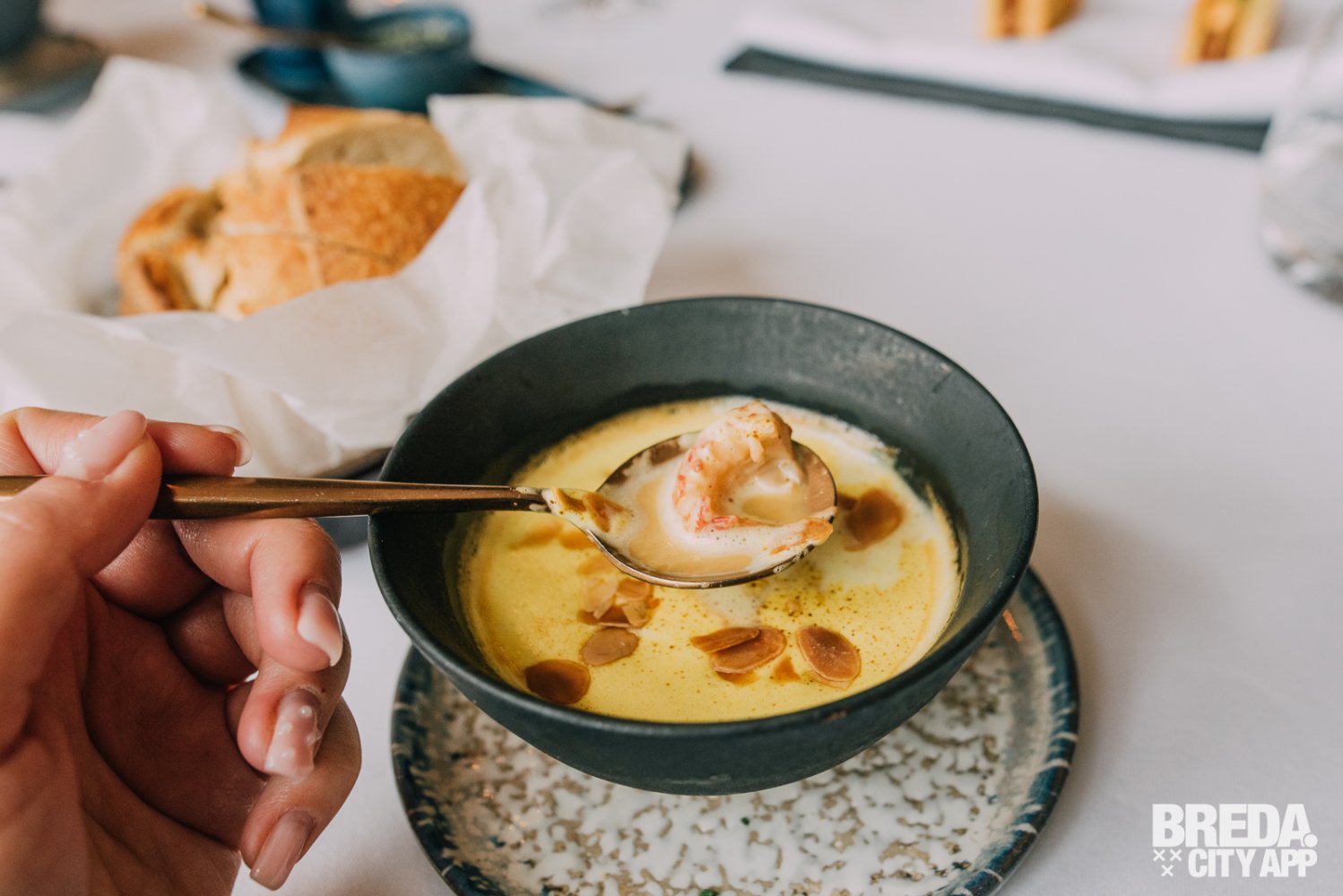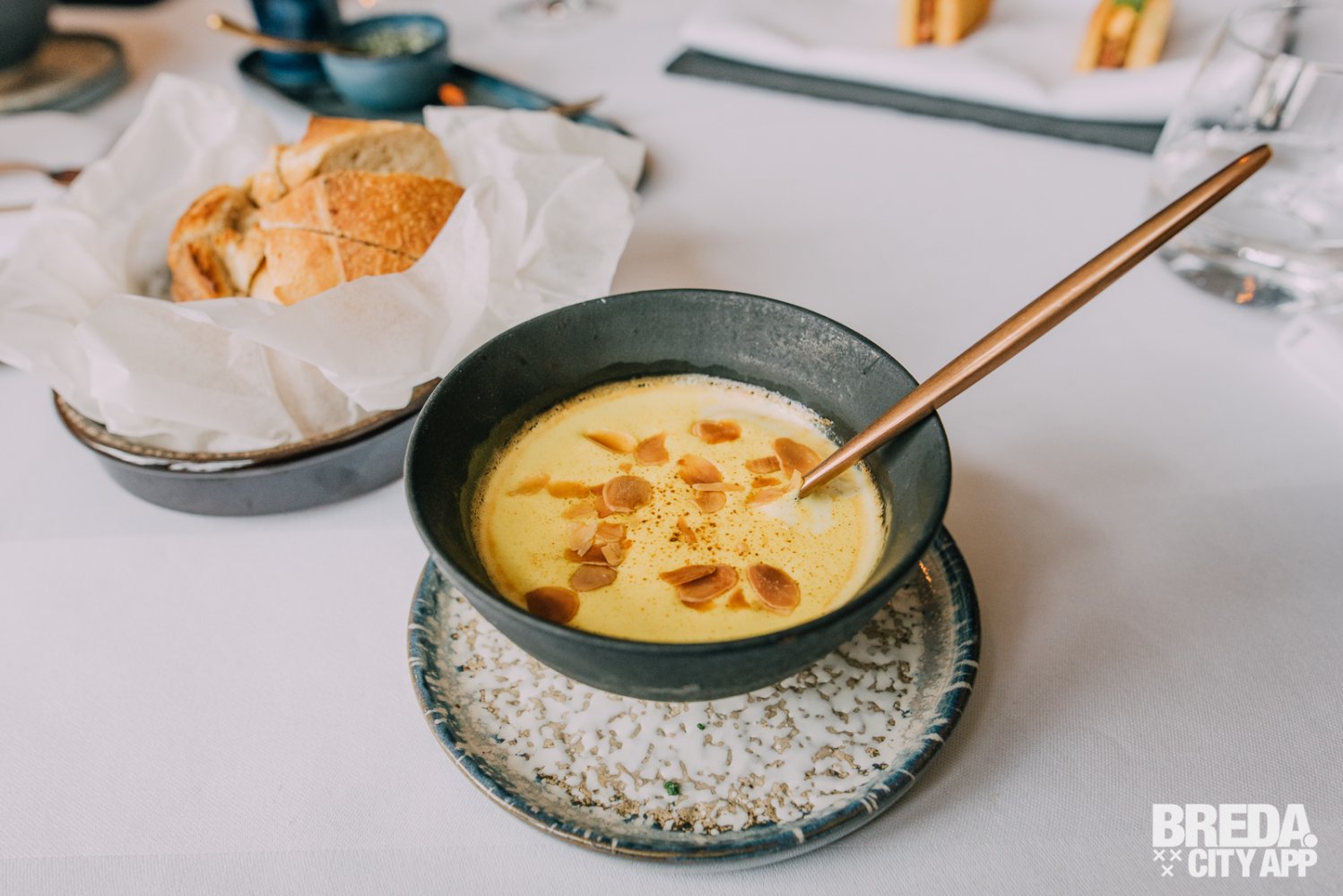 Een Lady curzon is van origine een schildpaddensoep. Nu is daar de nieuwe variant van de lady curzon wordt ons verteld. Deze soep is gemaakt op basis van kreeft, garnituur van luchtige room, kerrie en gebrande amandel. Deze soep is een echte toevoeging aan de lunch, luchtig en romig van smaak, de heerlijke kreeft met de bite van amandel.
