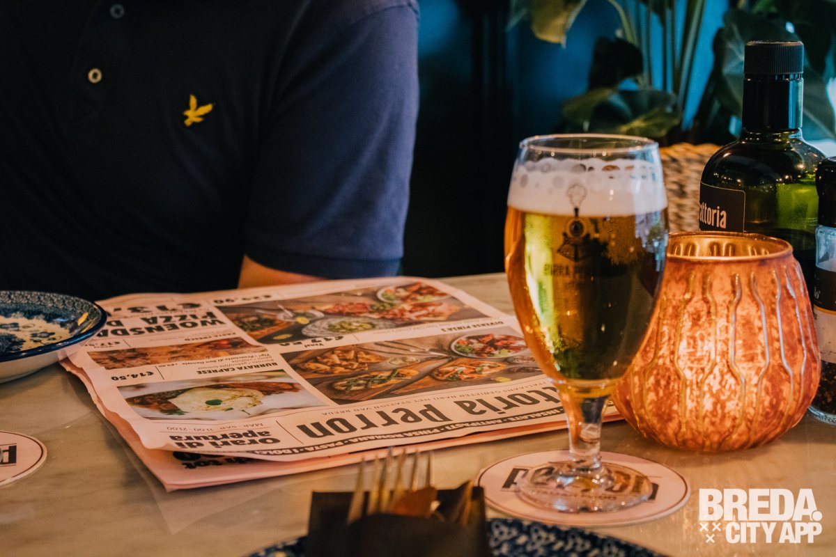 We beginnen met een koud biertje van Perron zelf, speciaal voor hen gebrouwen in Limburg. Deze goudgele pilsener smaakt heerlijk. De Trattoria is flink veranderd sinds het vorige concept; het ziet er modern, leuk en toegankelijk uit. De geschilderde Italiaanse vlag op het plafond is een opvallende eyecatcher, net als de Cannoli-vitrine. Deze typische Italiaanse lekkernij is ook los verkrijgbaar, ideaal als snack voor je treinreis.