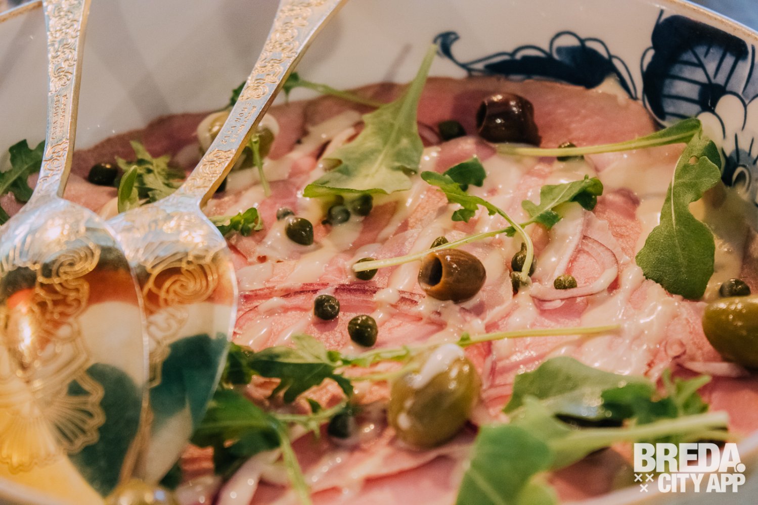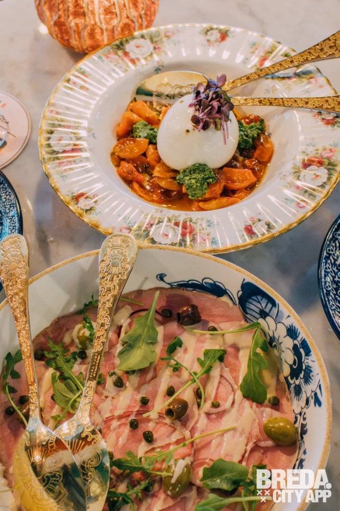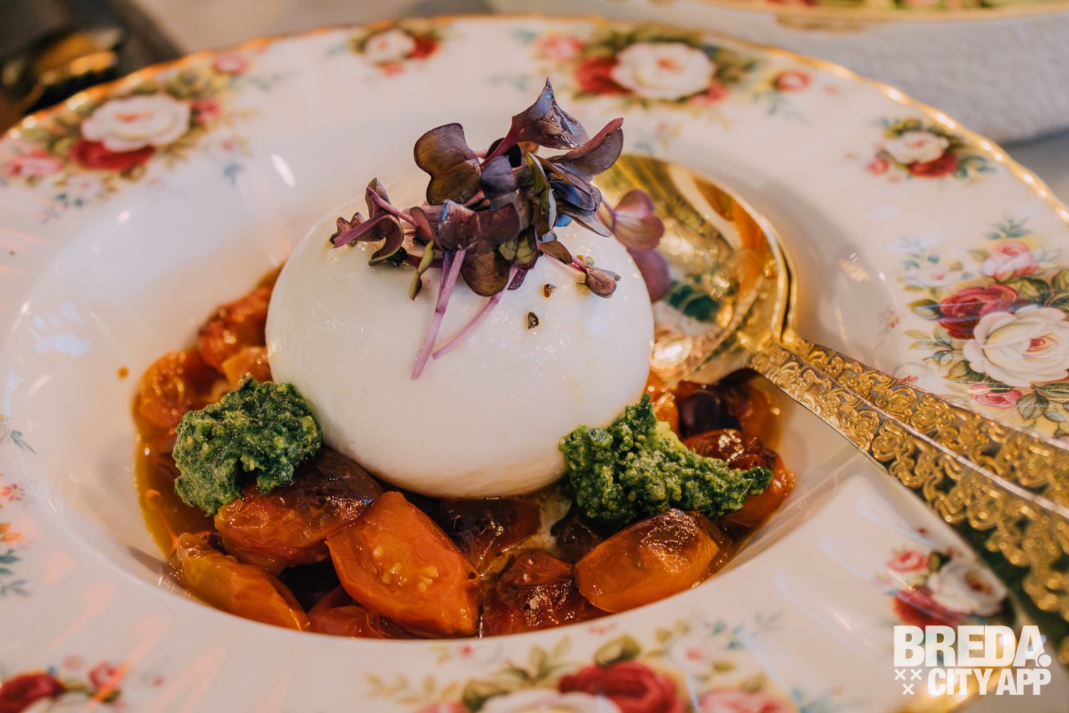 Martijn serveert de voorgerechten op hip bloemenservies met versierd bestek. De vitello tonnato smaakt licht en verfijnd door de combinatie van kalfsmuis en tonijncrème. De Burrata Caprese is ook favoriet, met zoet smakende gekonfijte tomaat als prettige starter. Bij het aansnijden van de burrata stroomt de stracciatella naar buiten, een teken van verse producten. Beide voorgerechten smaken goed en de presentatie maakt het compleet.