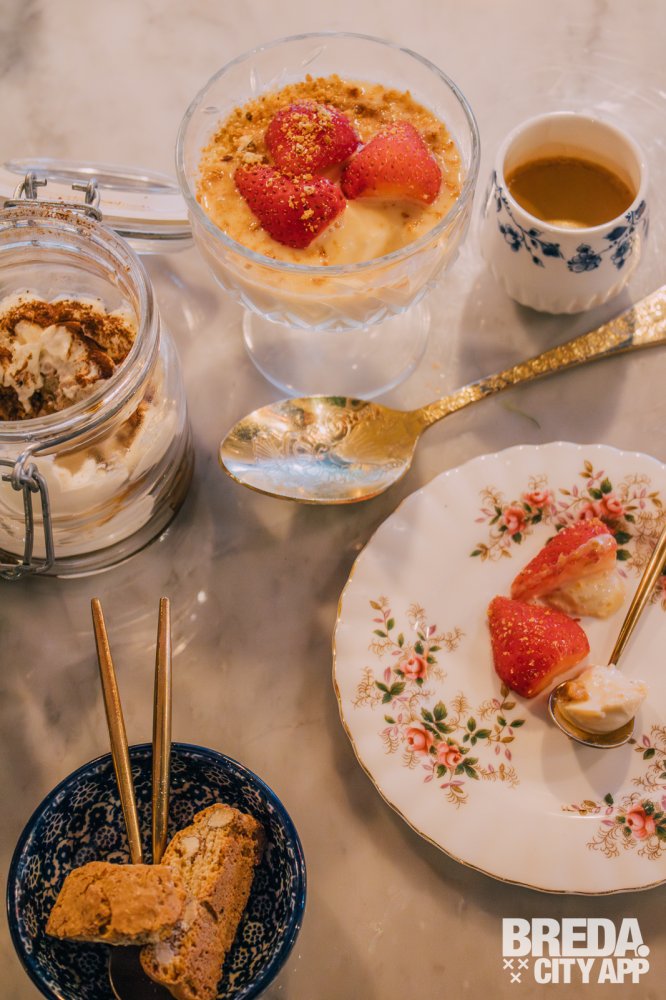 Wij sluiten af met panna cotta met verse aardbeien en tiramisu in een weckpotje, uiteraard met een goede kop koffie en een espresso. Positief verrast door deze leuke trattoria, raden we een bezoek aan Trattoria Perron zeker aan. Of je nu snel een doosje cannoli haalt voor je treinreis, geniet van een vluchtige pinsa voor je de stad in gaat, of met je gezin van een avondje uit, Trattoria Perron is een centrale locatie buiten het drukke centrum van Breda. Gelegen aan de Willemsstraat aan de voet van het Valkenberg, is het zeker een bezoekje waard.