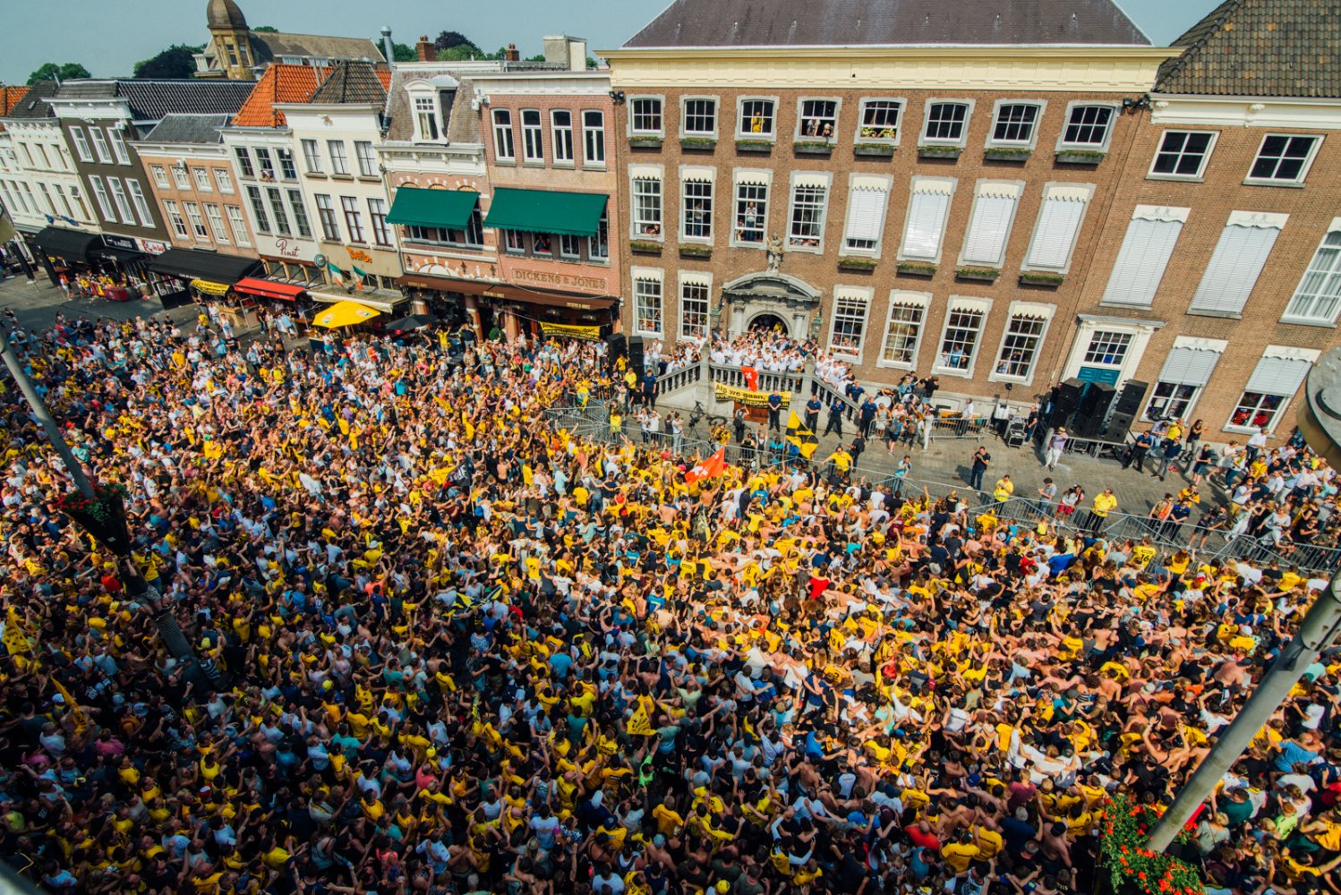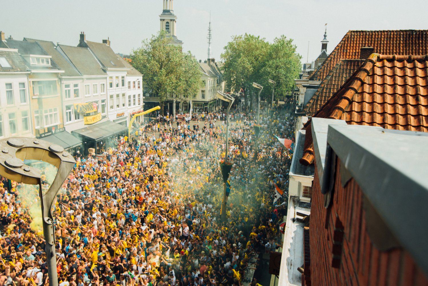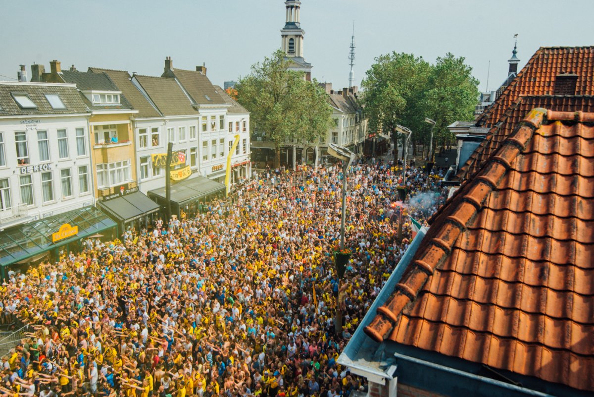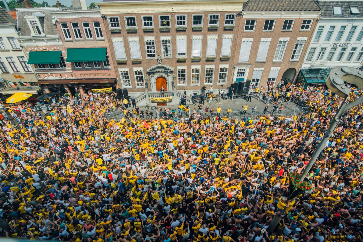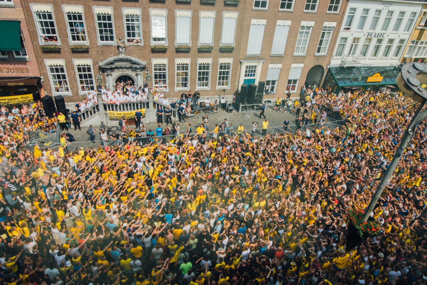 duizenden mensen op de Grote Markt voor de huldiging van NAC