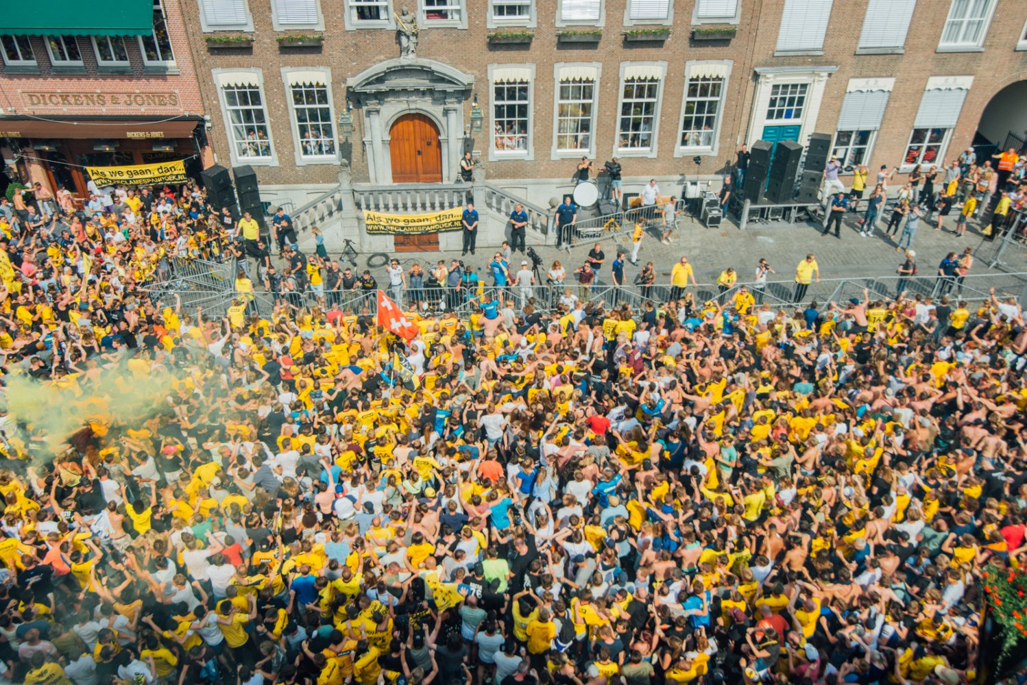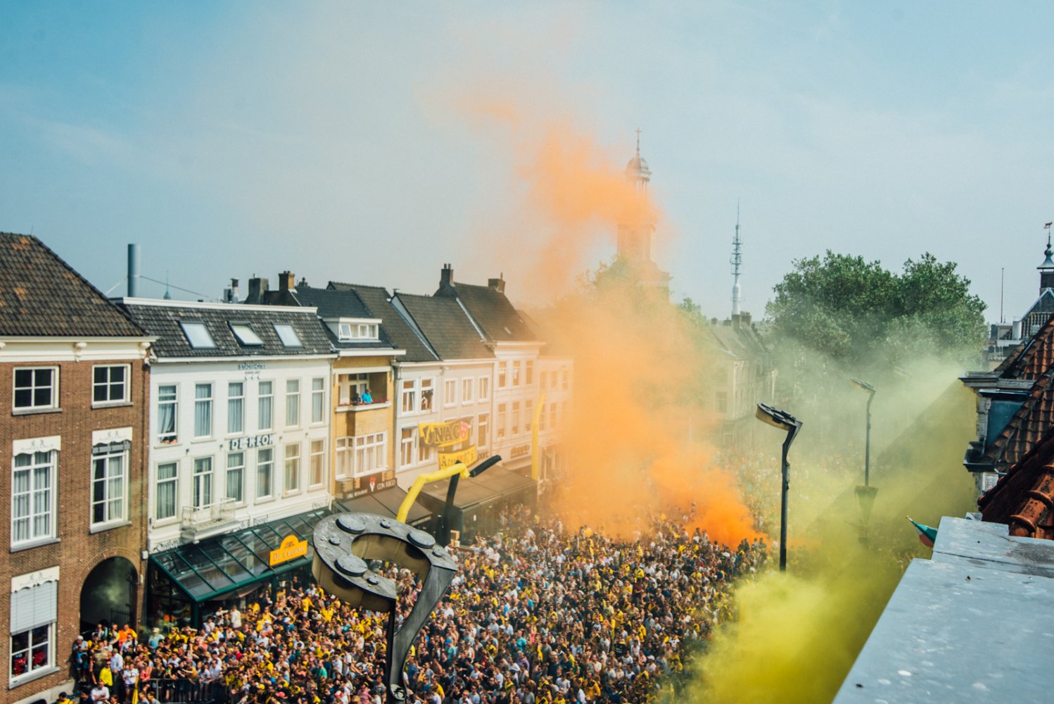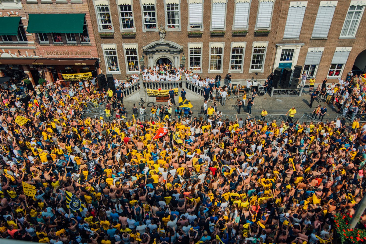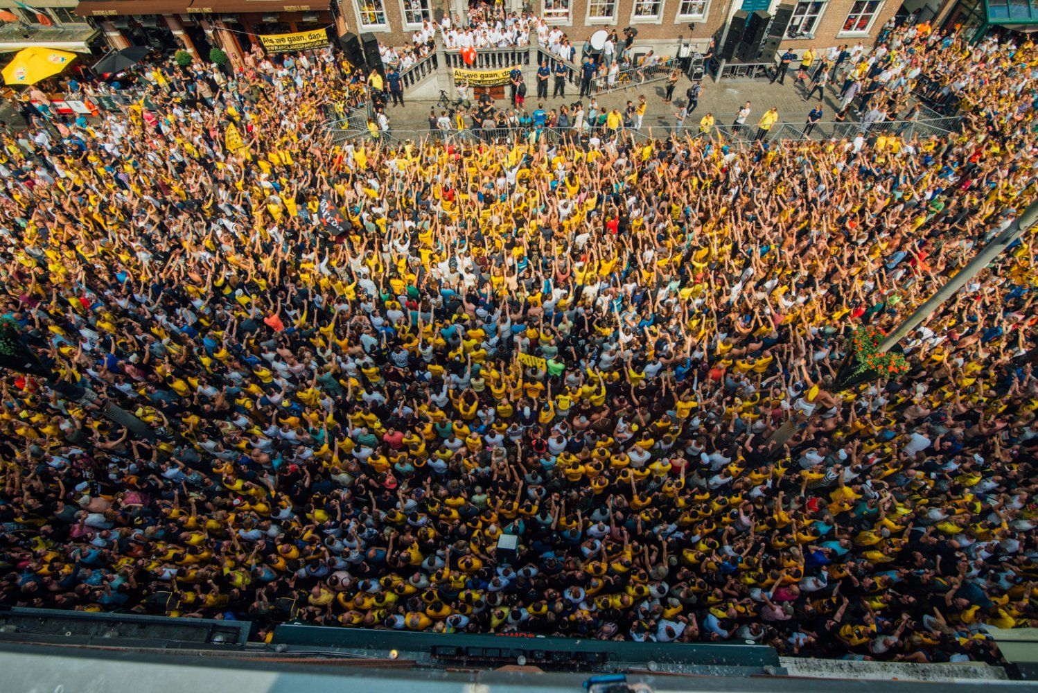 duizenden mensen op de Grote Markt voor de huldiging van NAC
