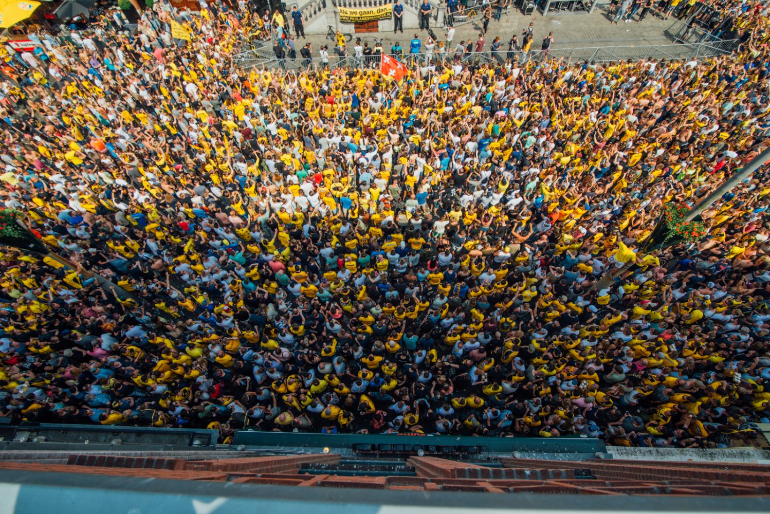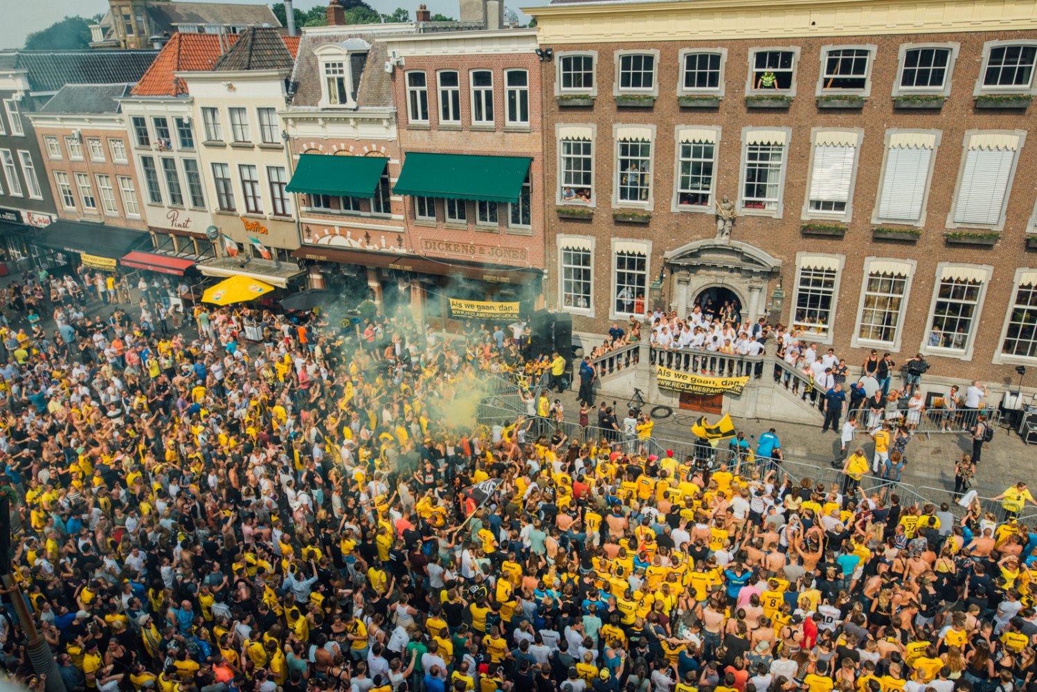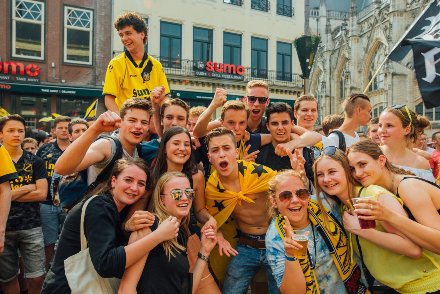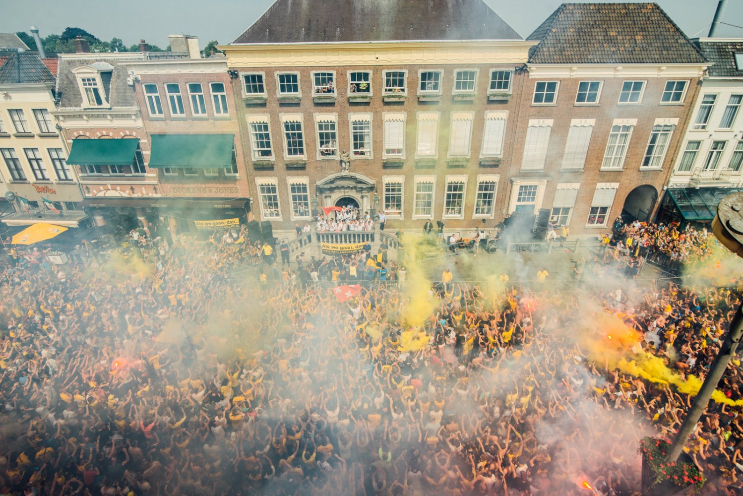 duizenden mensen op de Grote Markt voor de huldiging van NAC