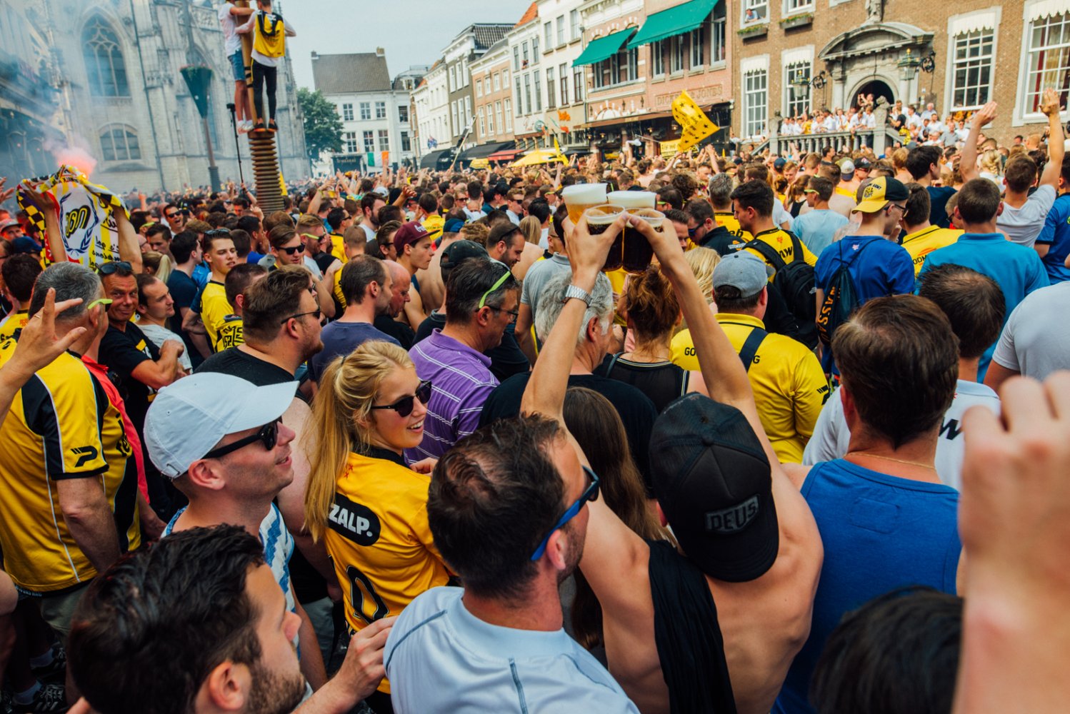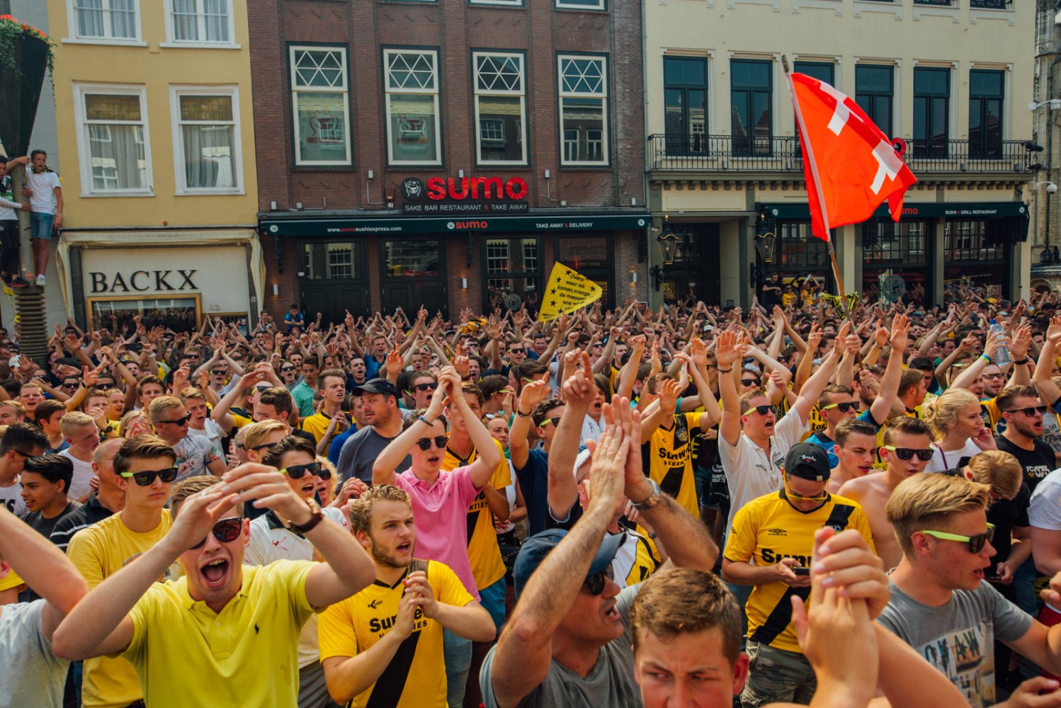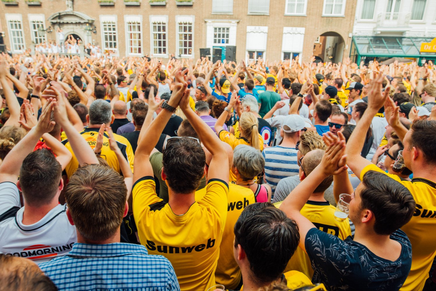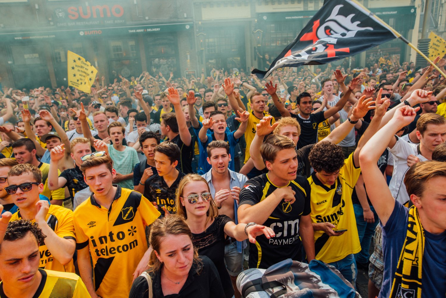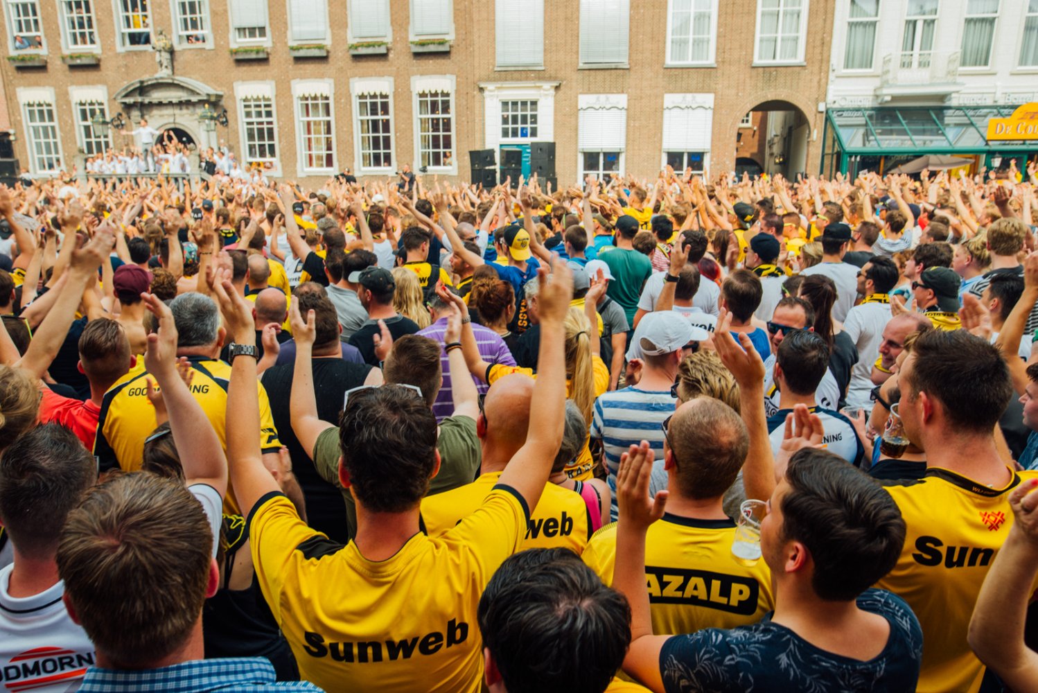 duizenden mensen op de Grote Markt voor de huldiging van NAC