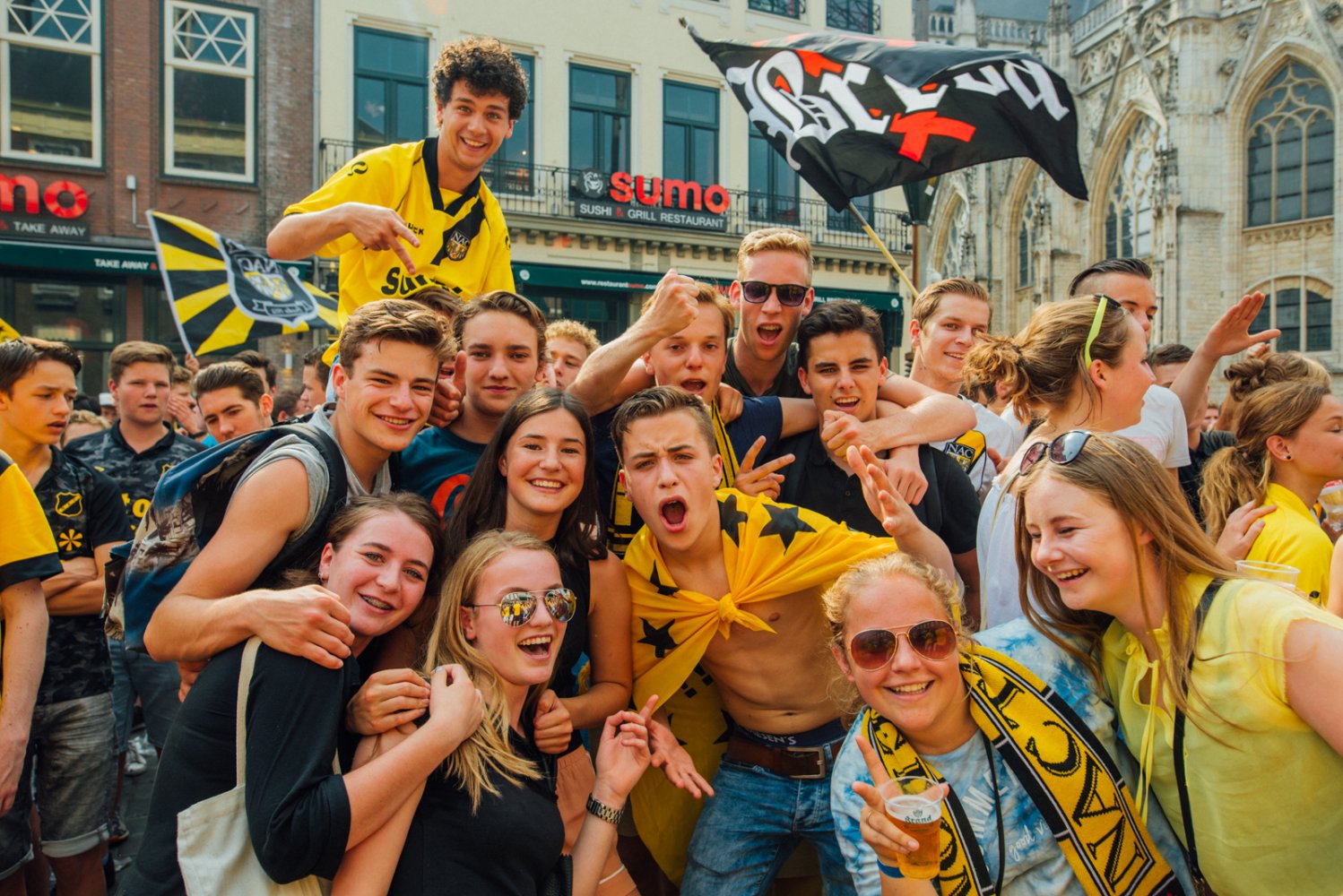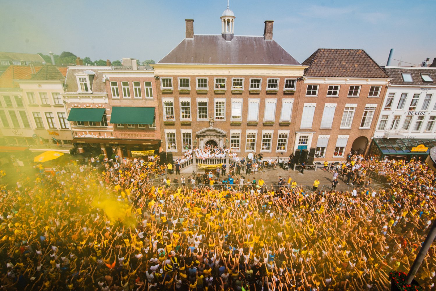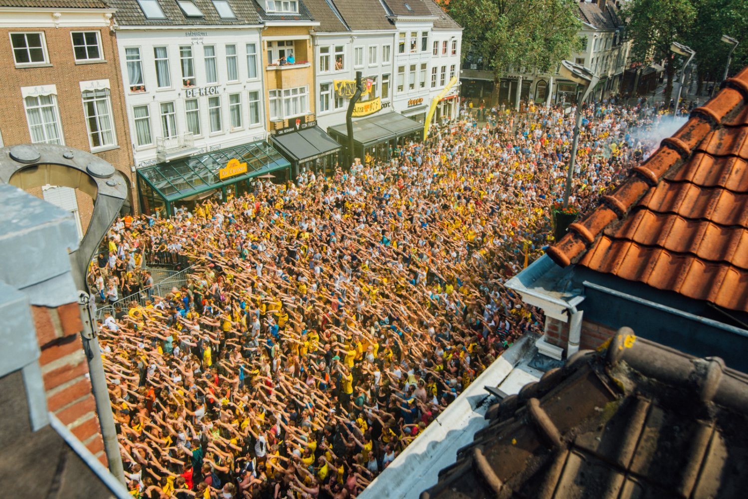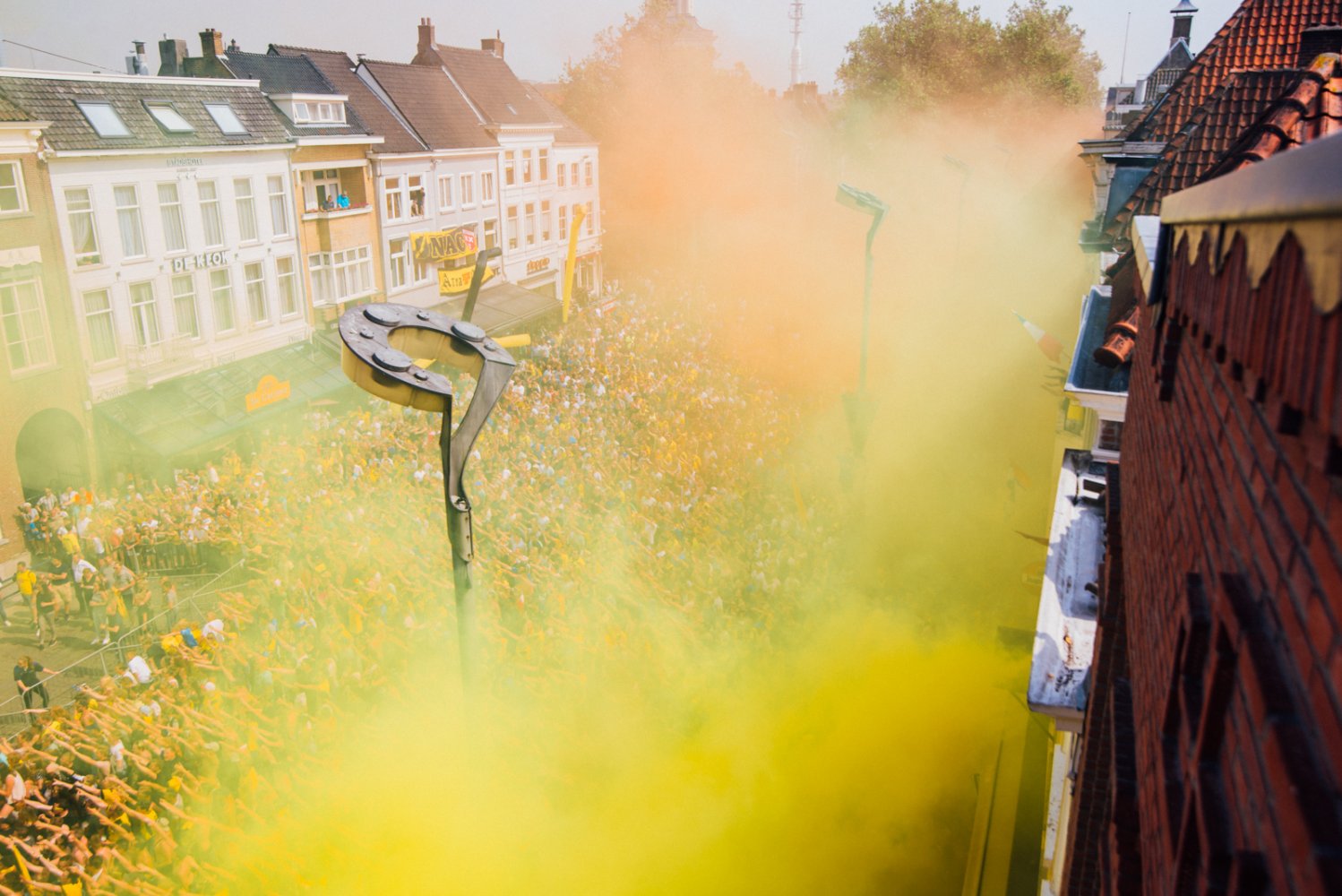 duizenden mensen op de Grote Markt voor de huldiging van NAC
