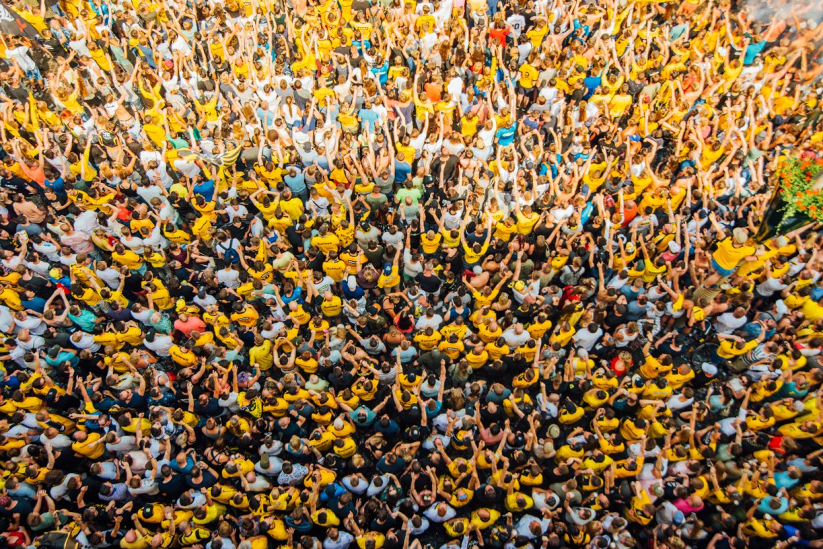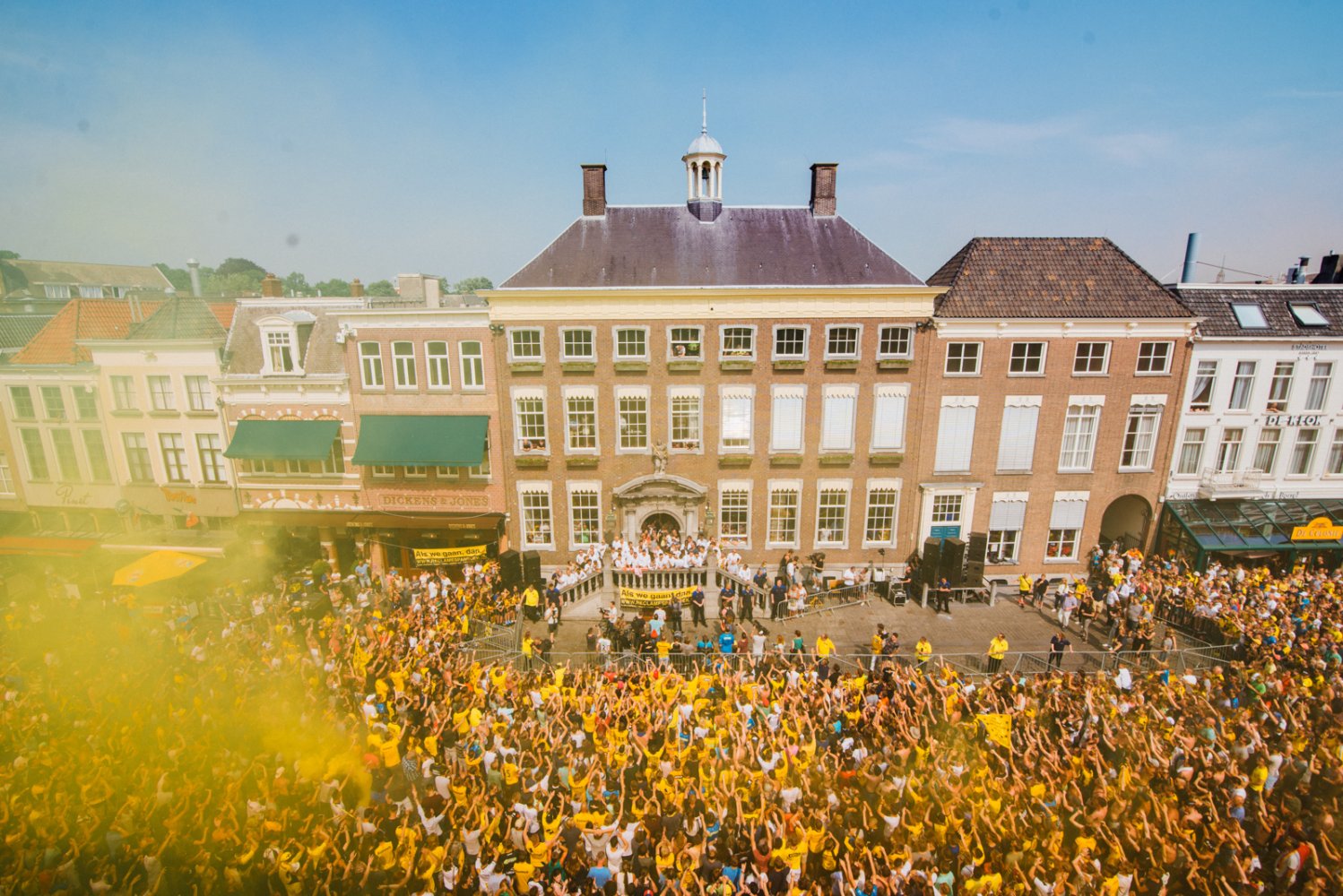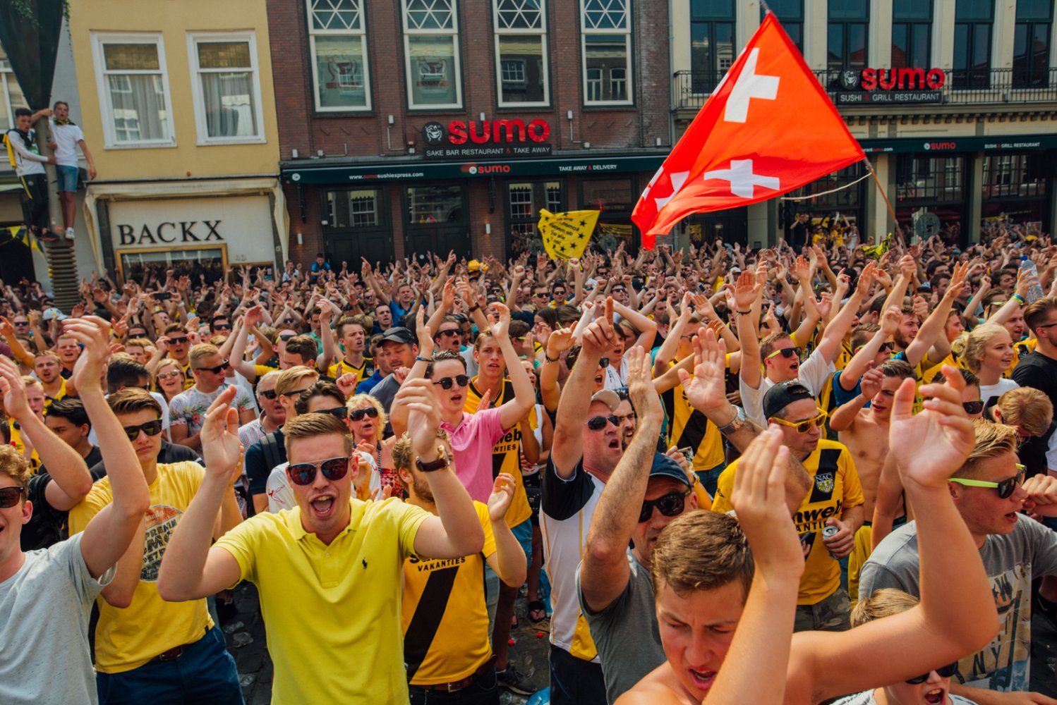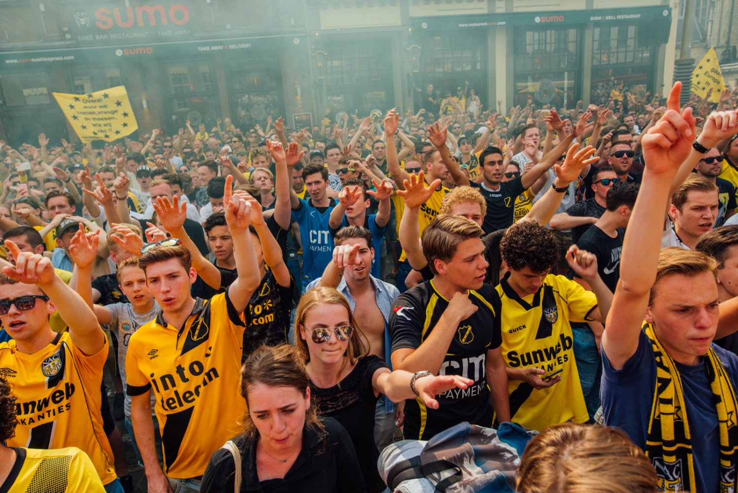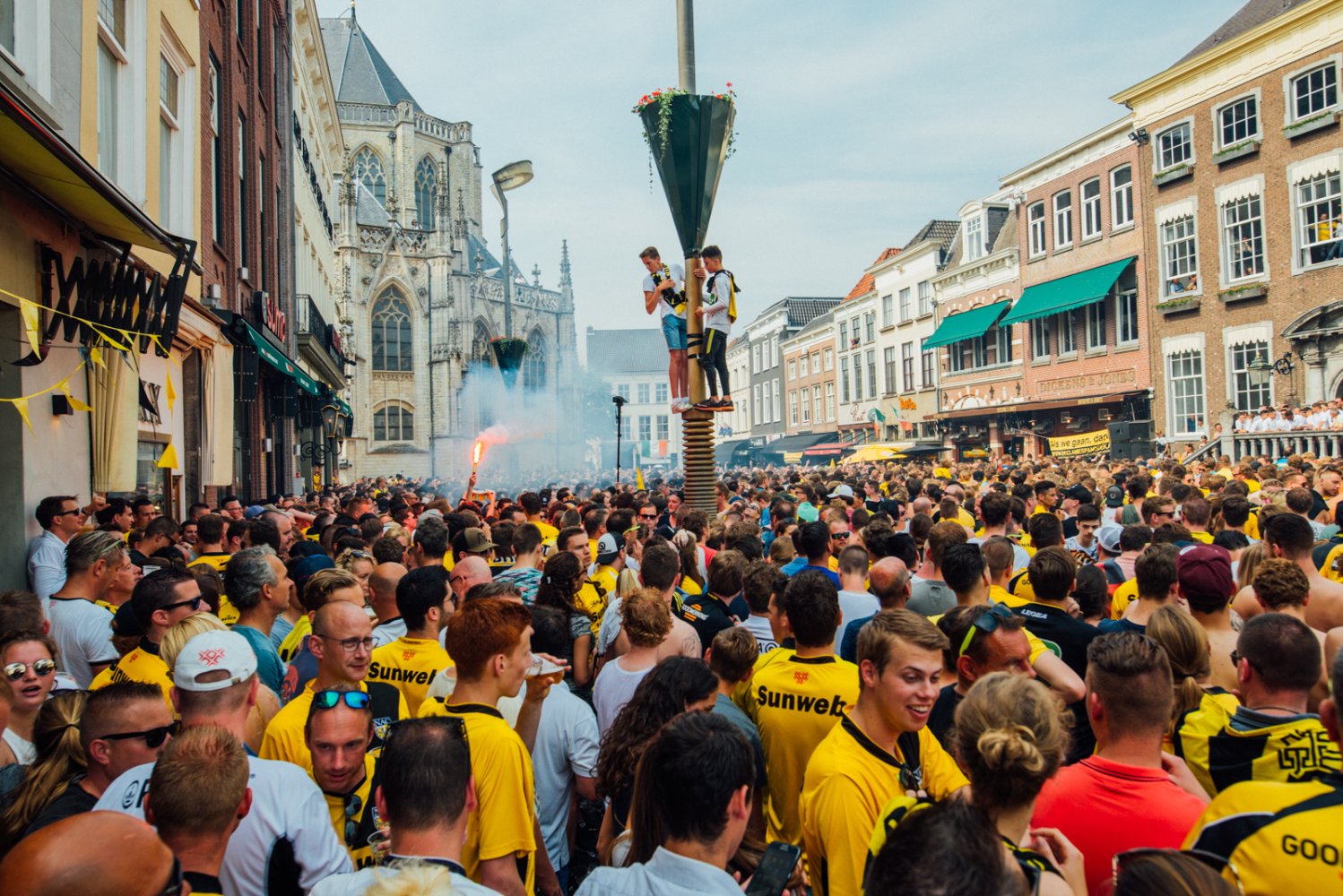 duizenden mensen op de Grote Markt voor de huldiging van NAC