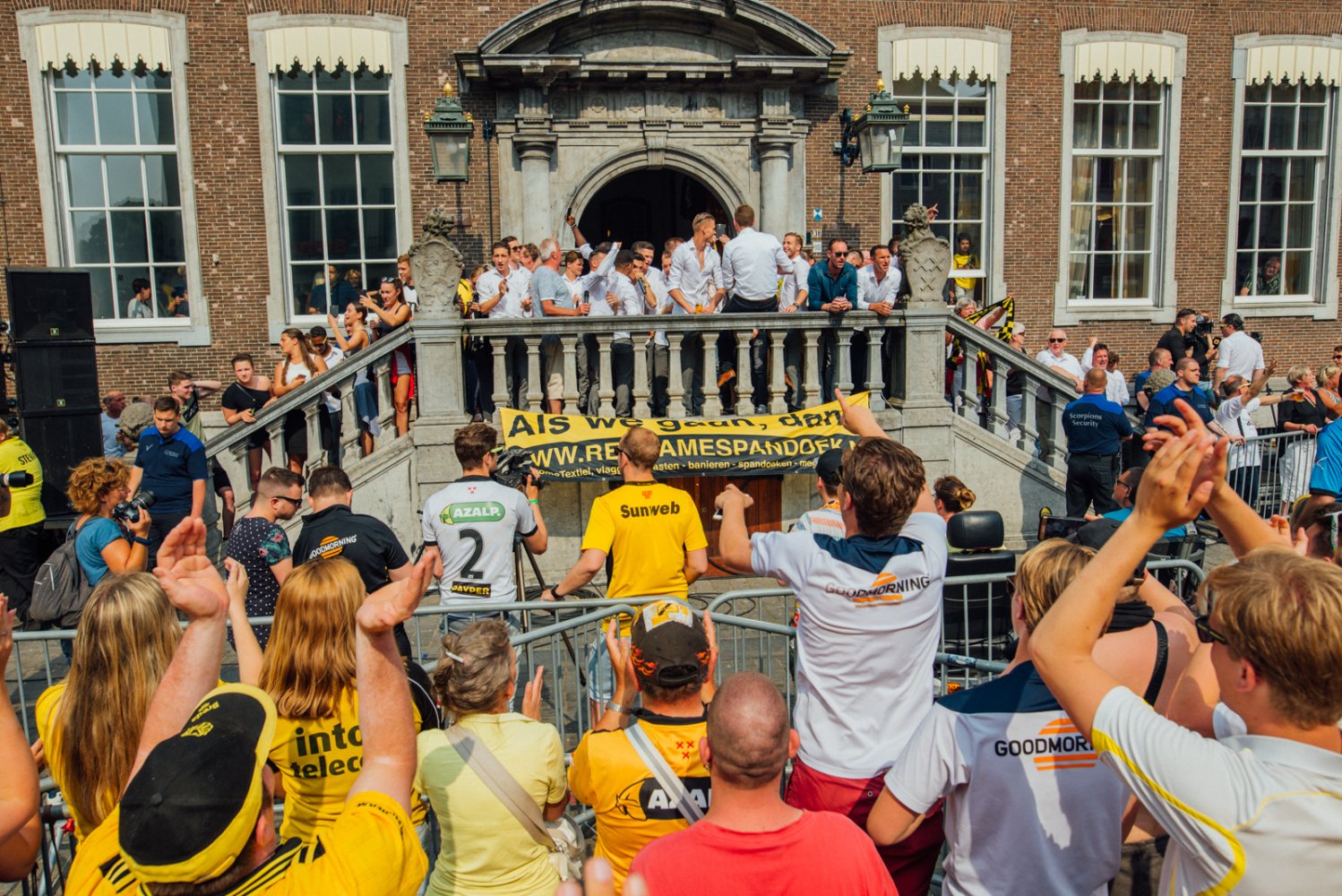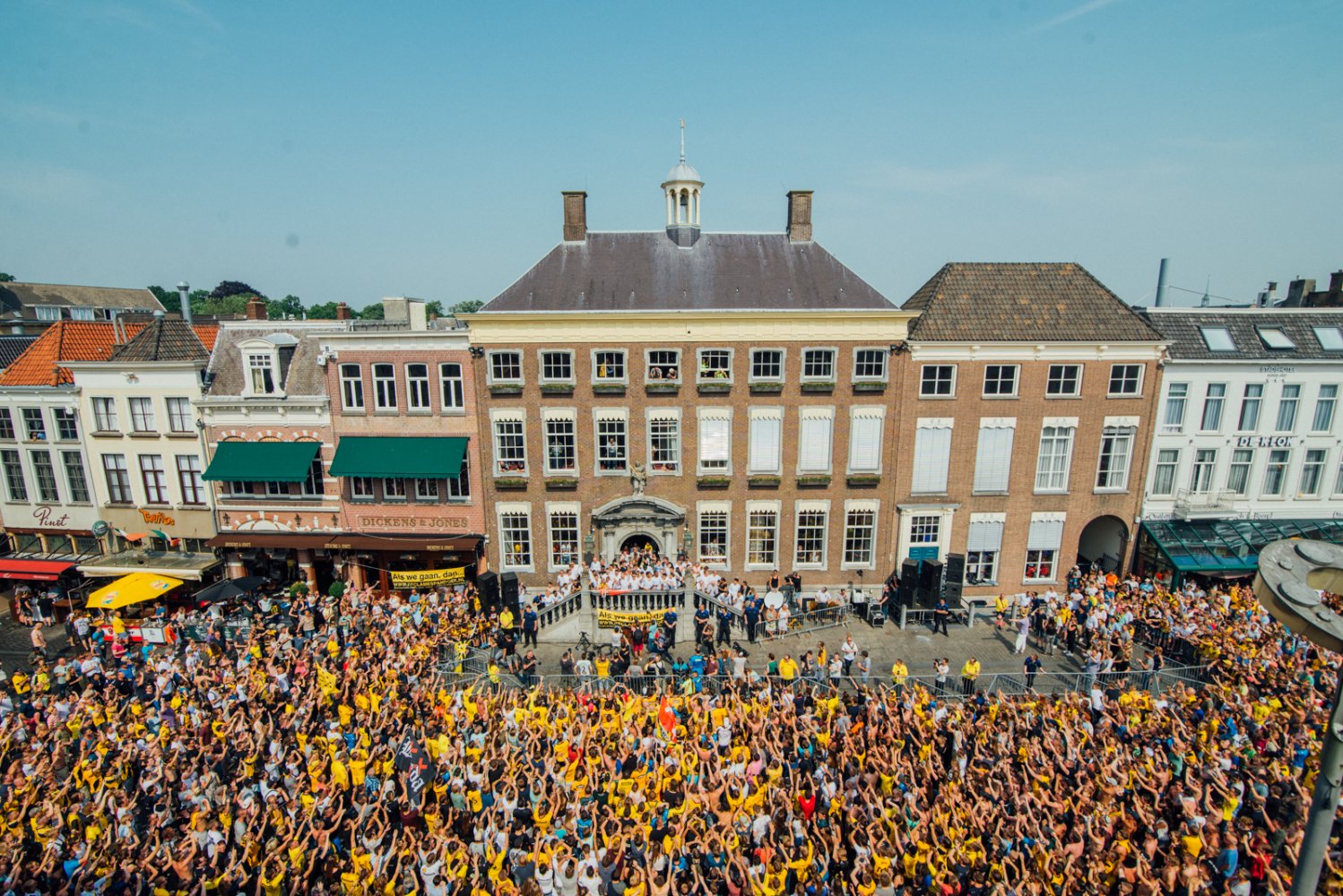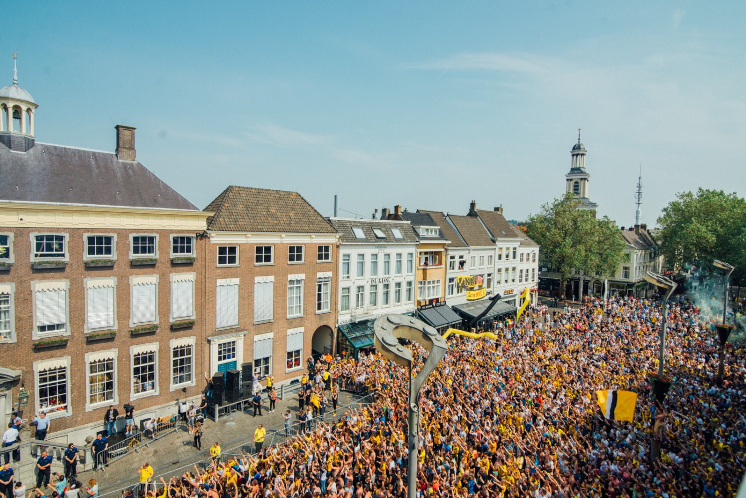 Op de Grote Markt in Breda werden maandagmiddag om 16.00 uur de spelers van NAC Breda gehuldigd. In de hitte stonden rond het middag uur al duizenden supporters klaar om hun helden te ontvangen. Om 4 uur verschenen de spelers en staf op het bordes van het gemeentehuis op de Grote Markt. Stappen & Shoppen was er bij en maakte deze foto's. Kijk snel verder voor een impressie van deze memorabele dag.