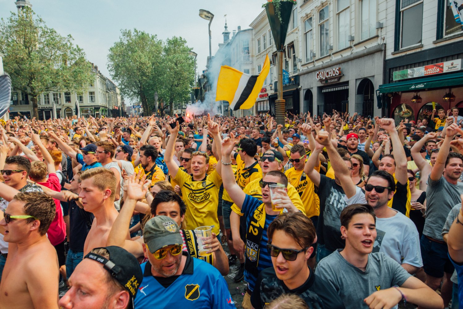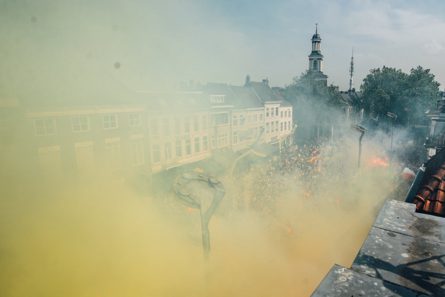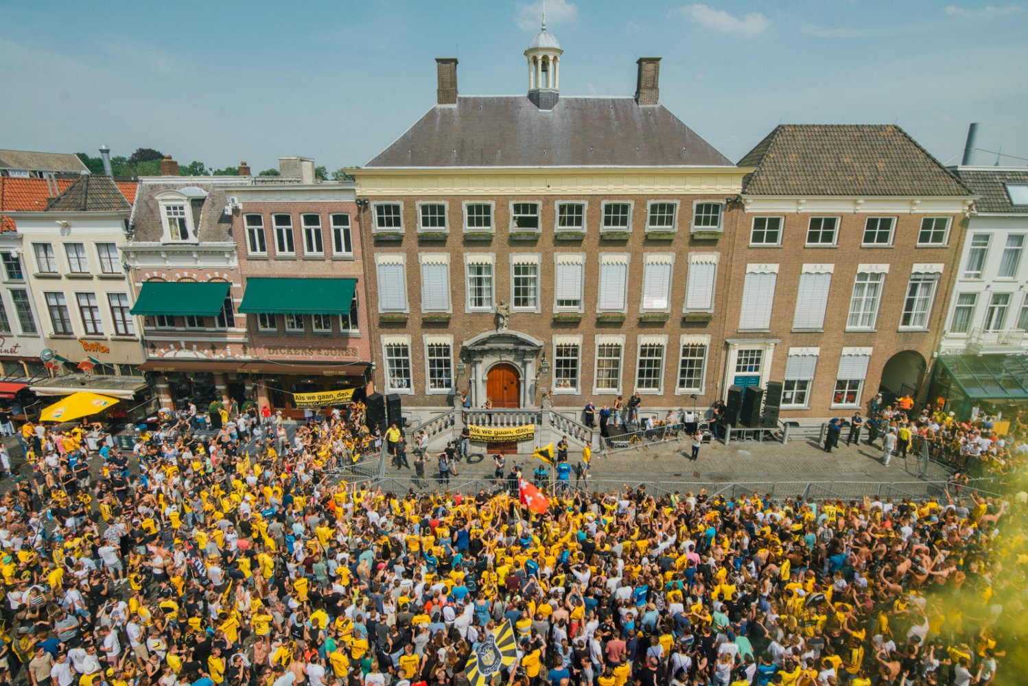 Op de Grote Markt in Breda werden maandagmiddag om 16.00 uur de spelers van NAC Breda gehuldigd. In de hitte stonden rond het middag uur al duizenden supporters klaar om hun helden te ontvangen. Om 4 uur verschenen de spelers en staf op het bordes van het gemeentehuis op de Grote Markt. Stappen & Shoppen was er bij en maakte deze foto's. Kijk snel verder voor een impressie van deze memorabele dag.